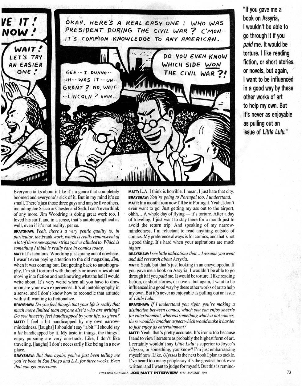THECOMICSJOURJIALJOE MATT INTERVIEW 1183 JANUARY1996
