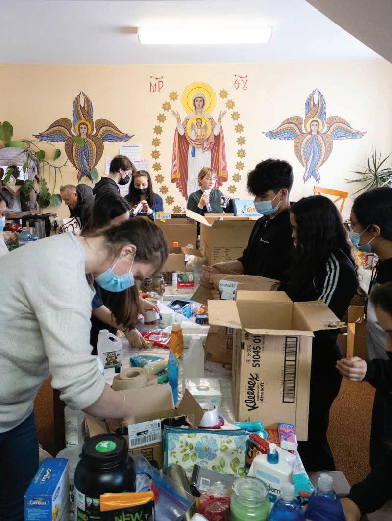 Volunteers from St. Michael’s or ganized donations by category to distribute to incoming