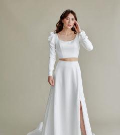 We're in love with this high-glamour look. The Gibson Jumpsuit by Sottero & Midgely (pictured above) looks perfect with a bold red lip and gold accessories.