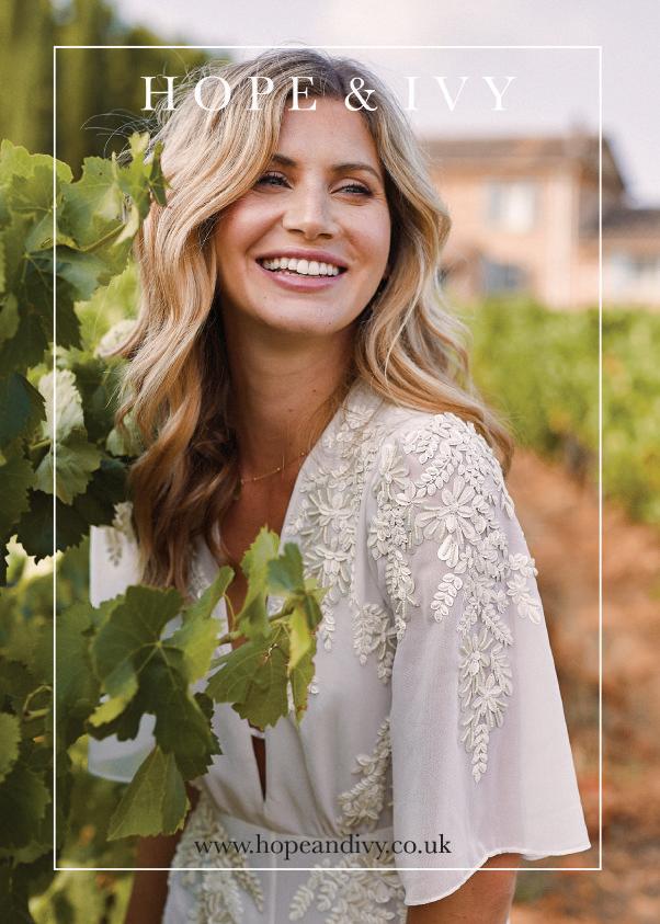 Our gorgeous cover was shot as part of a styled shoot by Amie Jackson Weddings. The stunning dress is style VRM257 by Viktor & Rolf at Browns Bride. See the Scandi-style set up on page 14.