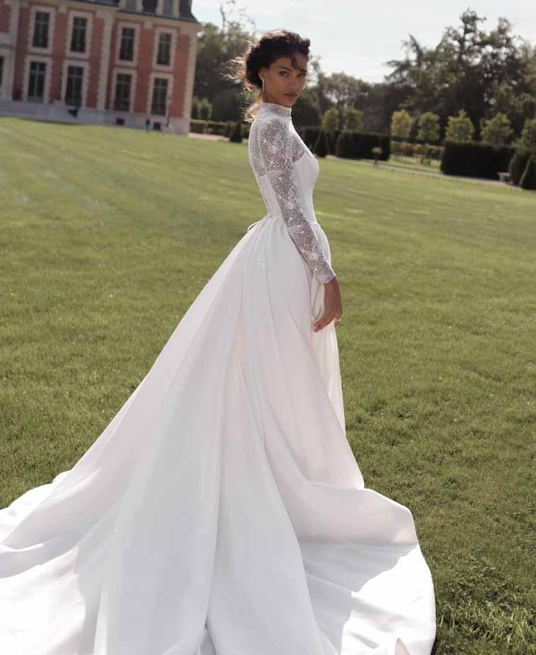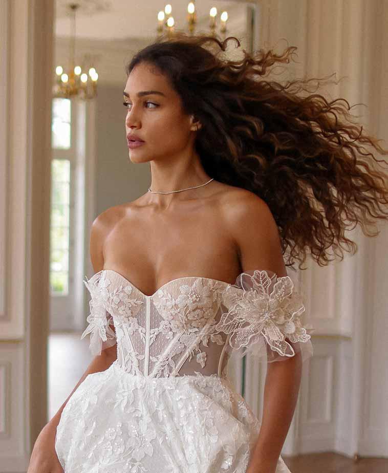 Being daring doesn’t mean compromising on taste. It’s all about balancing boldness with elegance, ensuring that you’re making a statement without overwhelming the essence of who you are. For brides looking to explore this sensuous style, consider your own comfort level and the nature of your ceremony. A low back or intricate cut-outs can add a sense of drama, while sheer overlays create a layered, multidimensional look that teases rather than reveals.