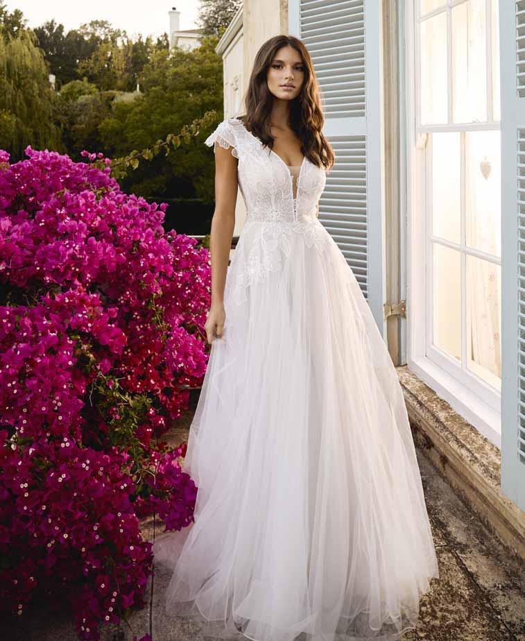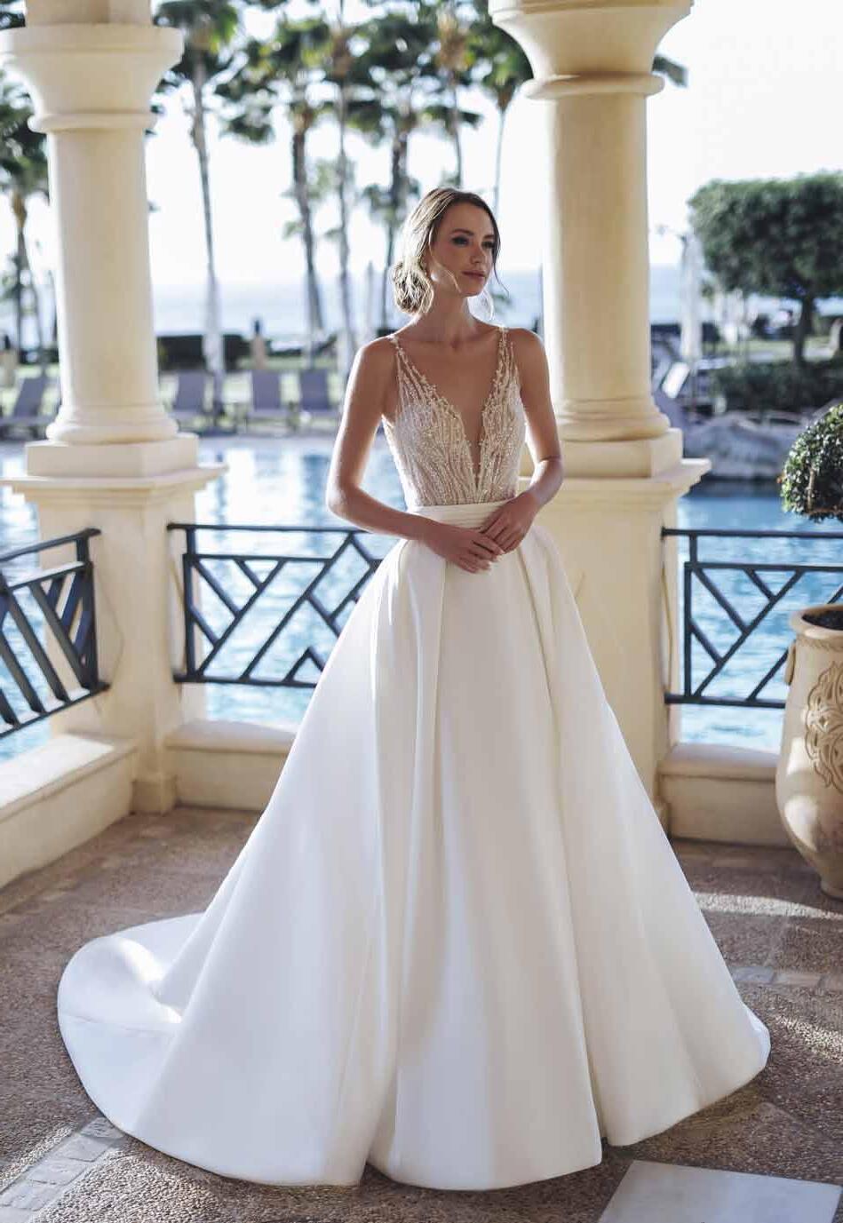 Below: Enzoani collection, STORMI truly gives you two gowns in one with the detachable Mikado overskirt