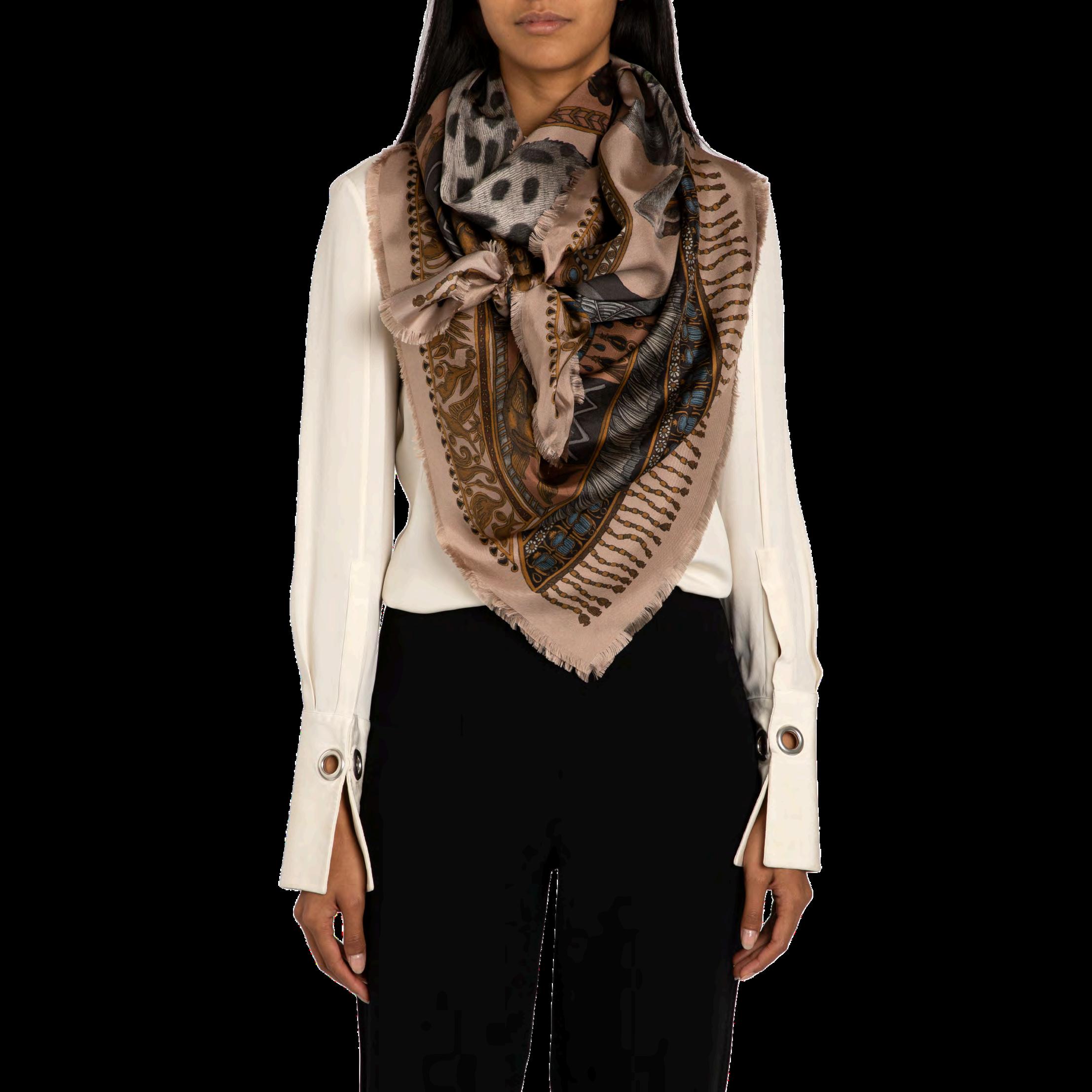 A limited-edition Sabina Savage silk shawl — a wearable artwork of Egyptian myth, illustratedinLondonandprintedinItaly.