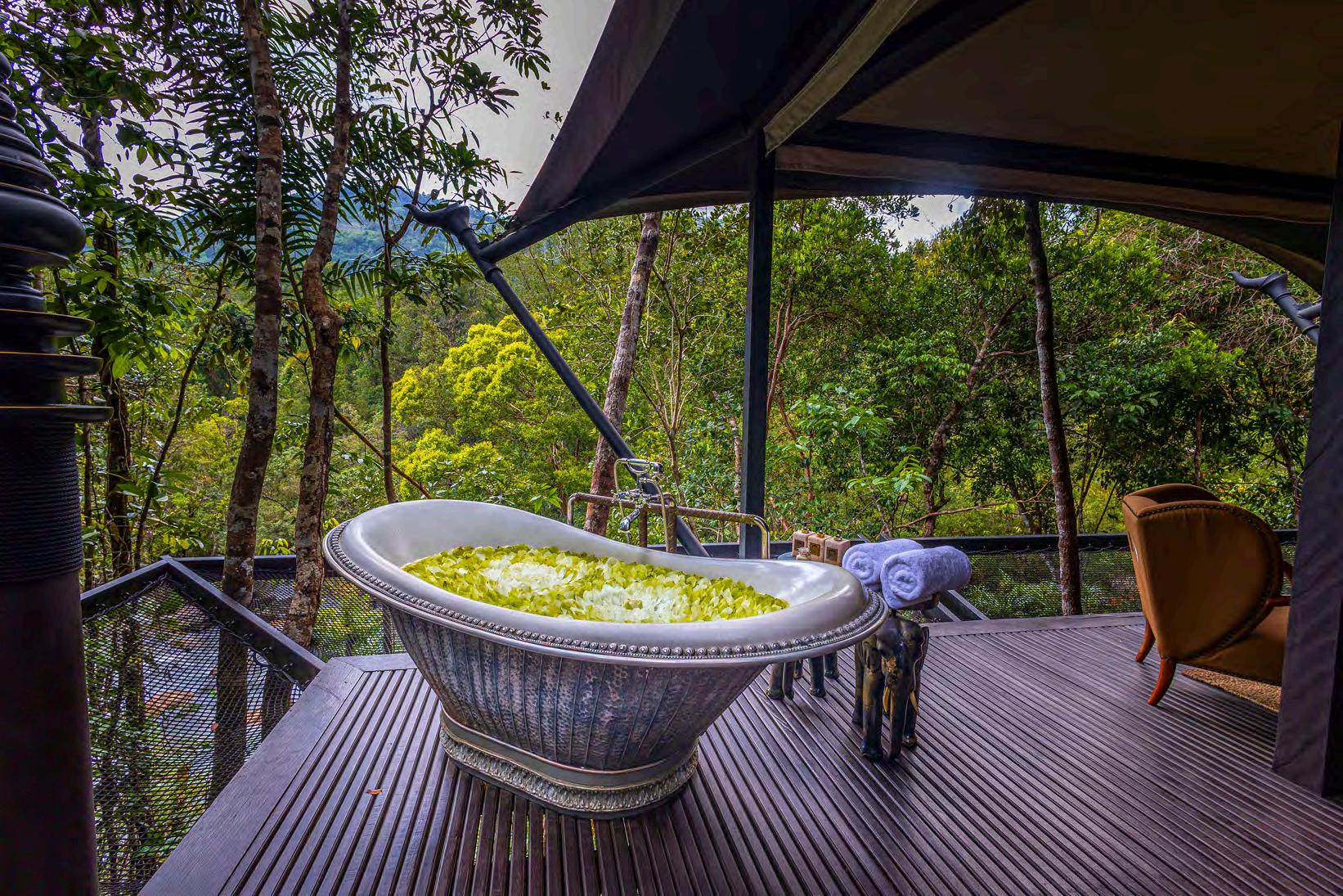 End your journey by travelling deep into the Cardamom Mountains for three nights at Shinta Mani Wild, an extraordinary all-inclusive tented camp that redefines the concept of luxury adventure. Perched above a rushing river, your WILD Tent is a work of art in canvas and steel — complete with open-air bathtub, custom furnishings, and sweeping jungle views. Here, every detail is curated for immersion and wonder: private guided excursions, sunset pop-up bars, and spa treatments by Khmer Tonics, all orchestrated by your personal Bensley Adventure Butler. Days unfold in rhythm with the forest — kayaking through mangroves, ziplining into camp, or joining the rangers on conservation patrols — before evenings of fine dining beneath the stars.
