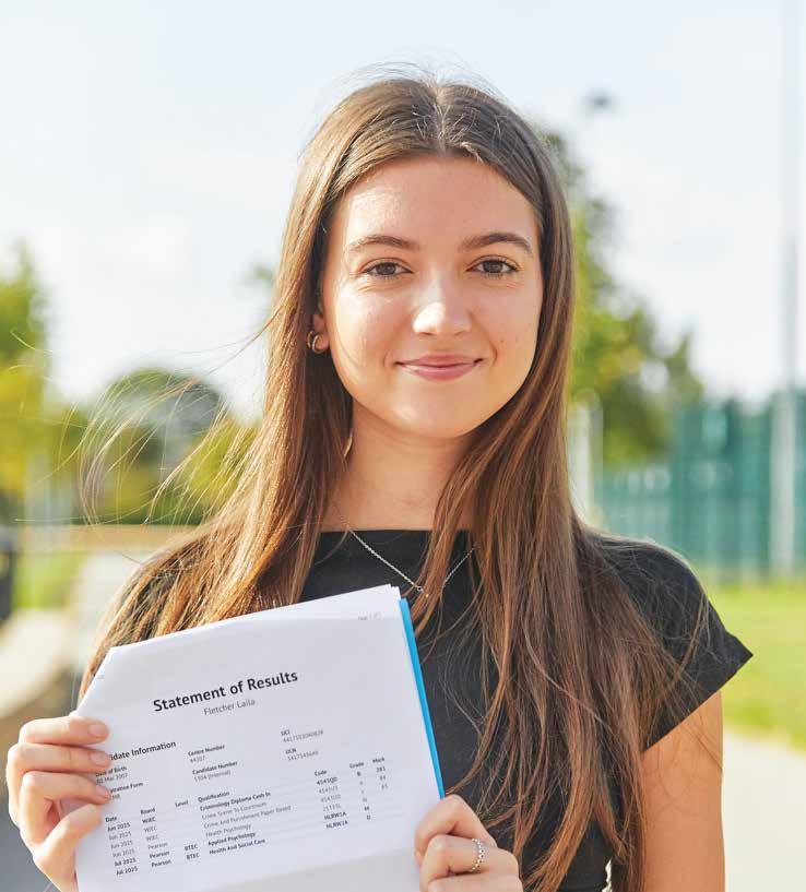 Some success stories this year include Harry achieved A*, A, A in his A Levels and will be studying English Literature and Classical Civilisation at Edinburgh, Alex achieved A*, A, A in his A Levels and will now start a degree apprenticeship with Amazon and Laila achieved Dist, Merit, B and will study Primary Education with QTS at Edge Hill