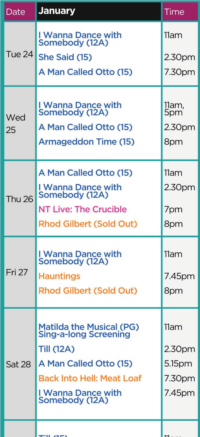 January Sat 21 5pm, Mon 23 11am, Tue 24 2.30pm USA, 2hr 8min