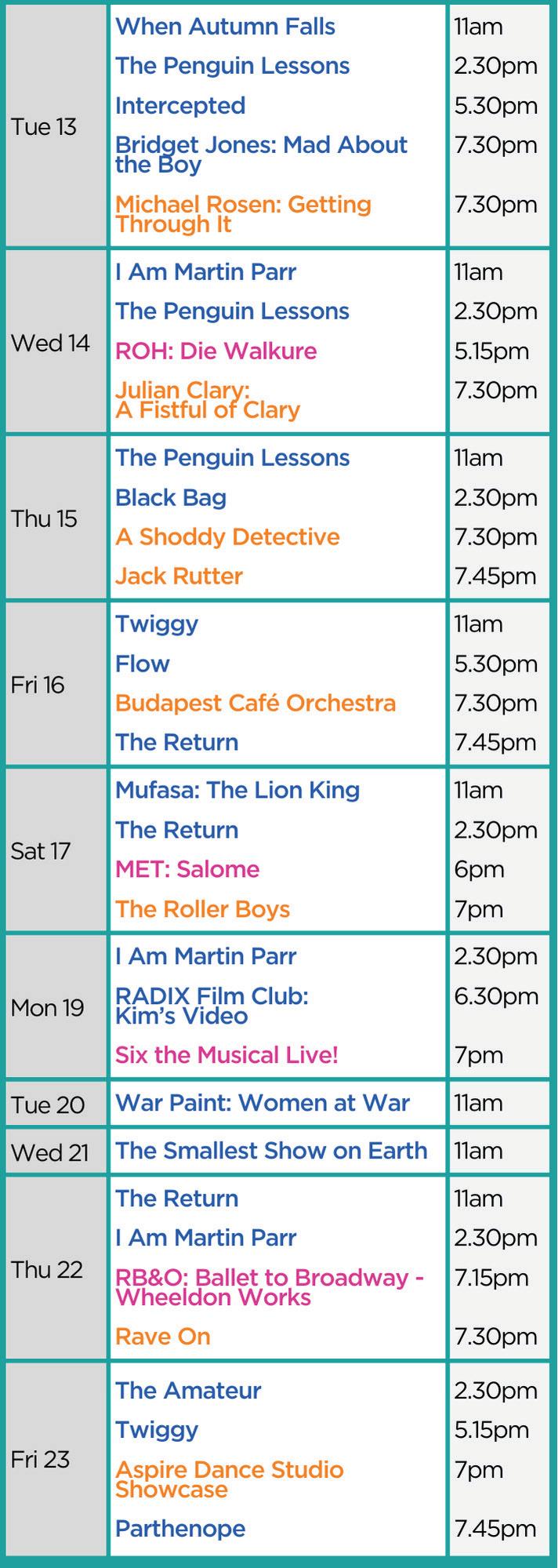 Fri 2 2.30pm & 7.30pm, Sat 3 2.30pm & 8pm, Tue 6 11am, Wed 7 11am, Fri 9 11am & 8.15pm (Subs), Mon 12 11am, Tue 13 2.30pm (Subs), Wed 14 2.30pm, Thu 15 11am, Wed 28 11am, Thu 29 2.30pm