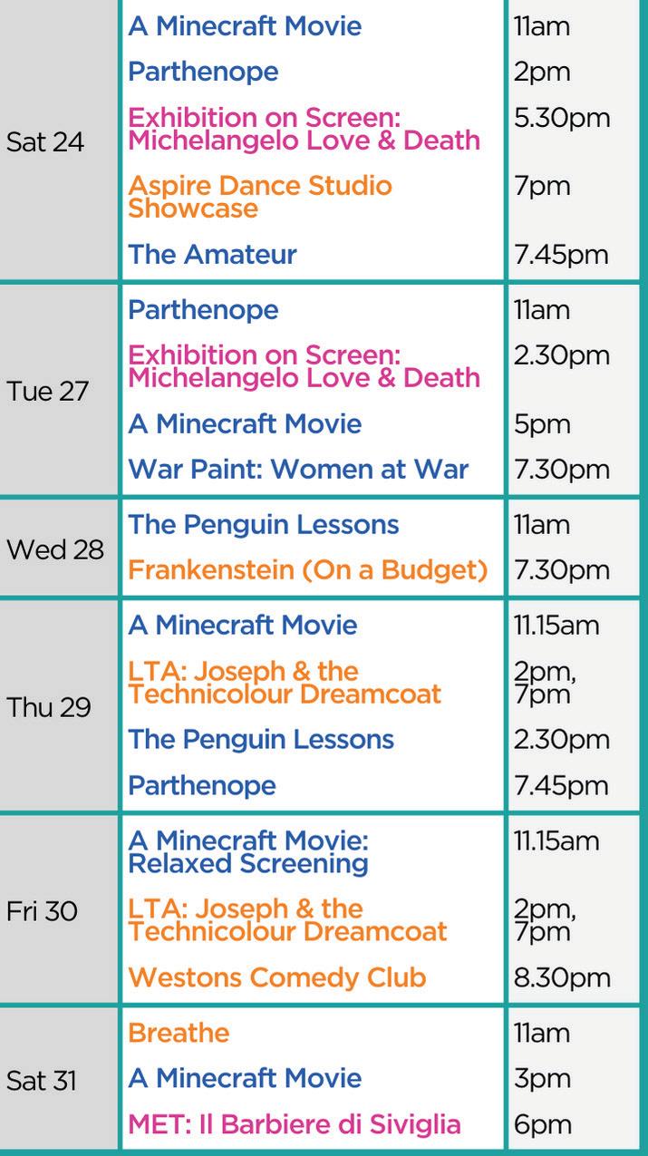 Fri 25 11am, Sat 26 2.30pm, Mon 28 5pm (Subs), Tue 29 11am, Wed 30 11am