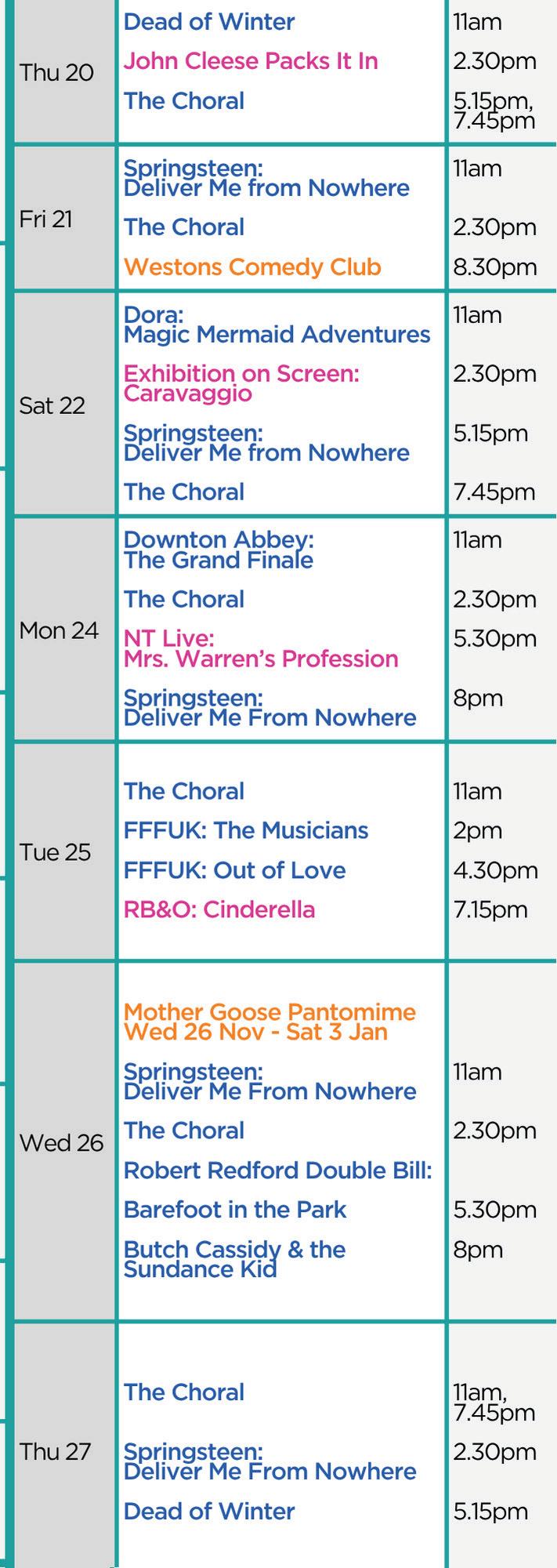 November Sat 1 5.15pm, Tue 4 7.45pm