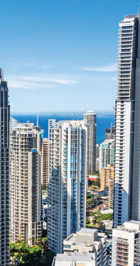 Among those projects is Navini, a ninestorey tower on Golden Four Drive offering just 16 absolute beachfront residences with sweeping coastal views and oversized floorplans. Sold out prior to construction and due to settle this month, Kollosche New Projects achieved a record result for the penthouse, which sold for a Bilinga apartment record of $5,395,000.