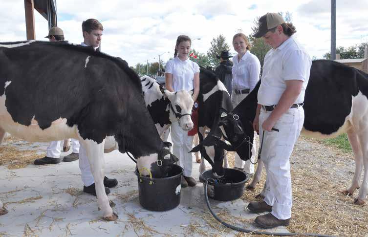 Fellow South Simcoe 4H members congratulate Clara Brooks (centre) on winning the red ribbon in the dairy show novice showmanship, for Stayner's Walkhavern Farms, at the GNE fall fair on Friday, Sept. 23. Fair officials are reporting record attendance and a successful event overall.