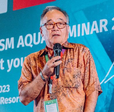knowledge-based production regime. This can only be achieved through increased use of emerging technologies and automated systems, for example, in the feeding system. “Most shrimp production costs can be reduced by effective feeding. Overfeeding leads to feed waste - high FCR, toxicity, unstable water quality, affects shrimp health, and increases feed costs. Whereas underfeeding leads to low ADG - longer cycles, shrimp entering muddy fields for feed, affecting shrimp health, and increasing energy maintenance costs,” he said. Other speakers presented on the first day were Alexander H. Farthing from DELOS, Abung M. Simanjuntak from dsm-firmenich, Régis Bador from Innove’Aquaculture, Budi Tanaka from BioCycle Indonesia, Dr. Melony Sellars from Genics, and Dr. Dean Akiyama as Aquaculture Consultant, each presenting various topics within their expertise.