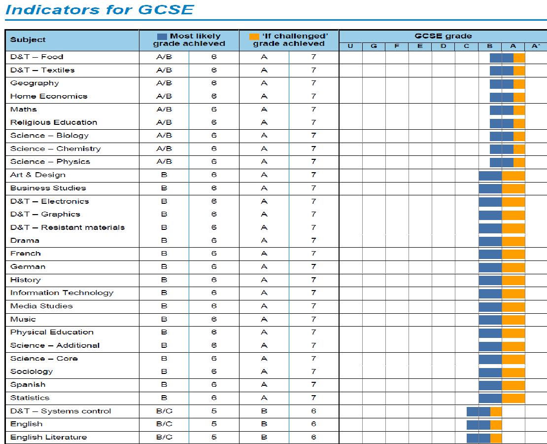 • Using historical data, you have also been given a guide to what outcome is likely for each student for a variety of subjects at GCSE.
