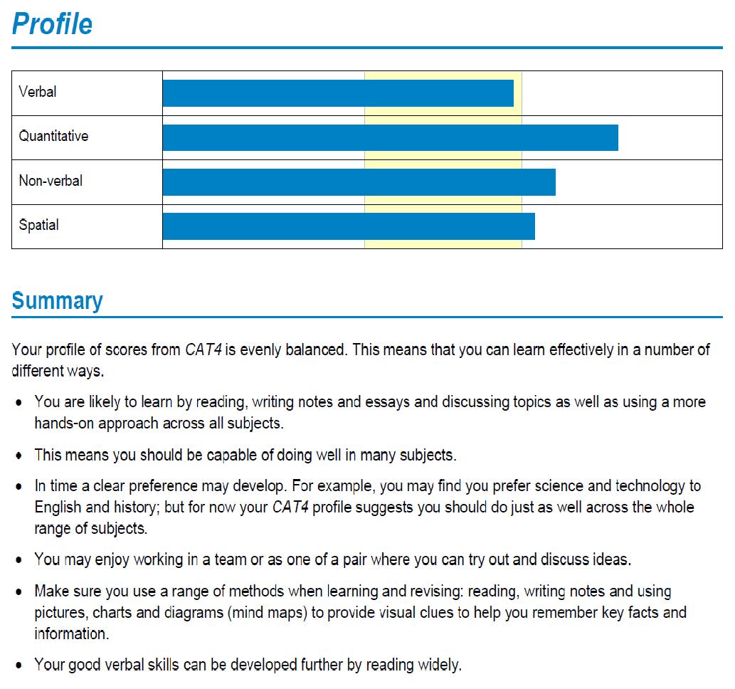 • It suggests where their strongest area is and suggests how they might learn – this is useful when developing revision techniques for GCSE preparation.