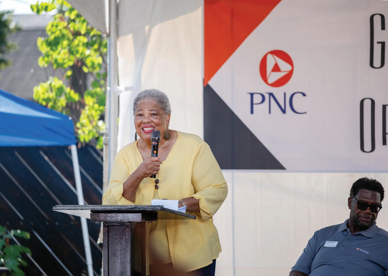 Liz Abunaw, the founder and owner of Forty Acres Fresh Market, basks in applause at her store's grand opening on Sept. 27. PHOTO BY KENN COOK JR.
