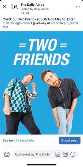 KCR College Radio reaches an entirely different San Diego State University audience from The Daily Aztec. KCR offers on-air underwriting, digital ads in the RadioFX app, Social Media posts, and Podcasts.