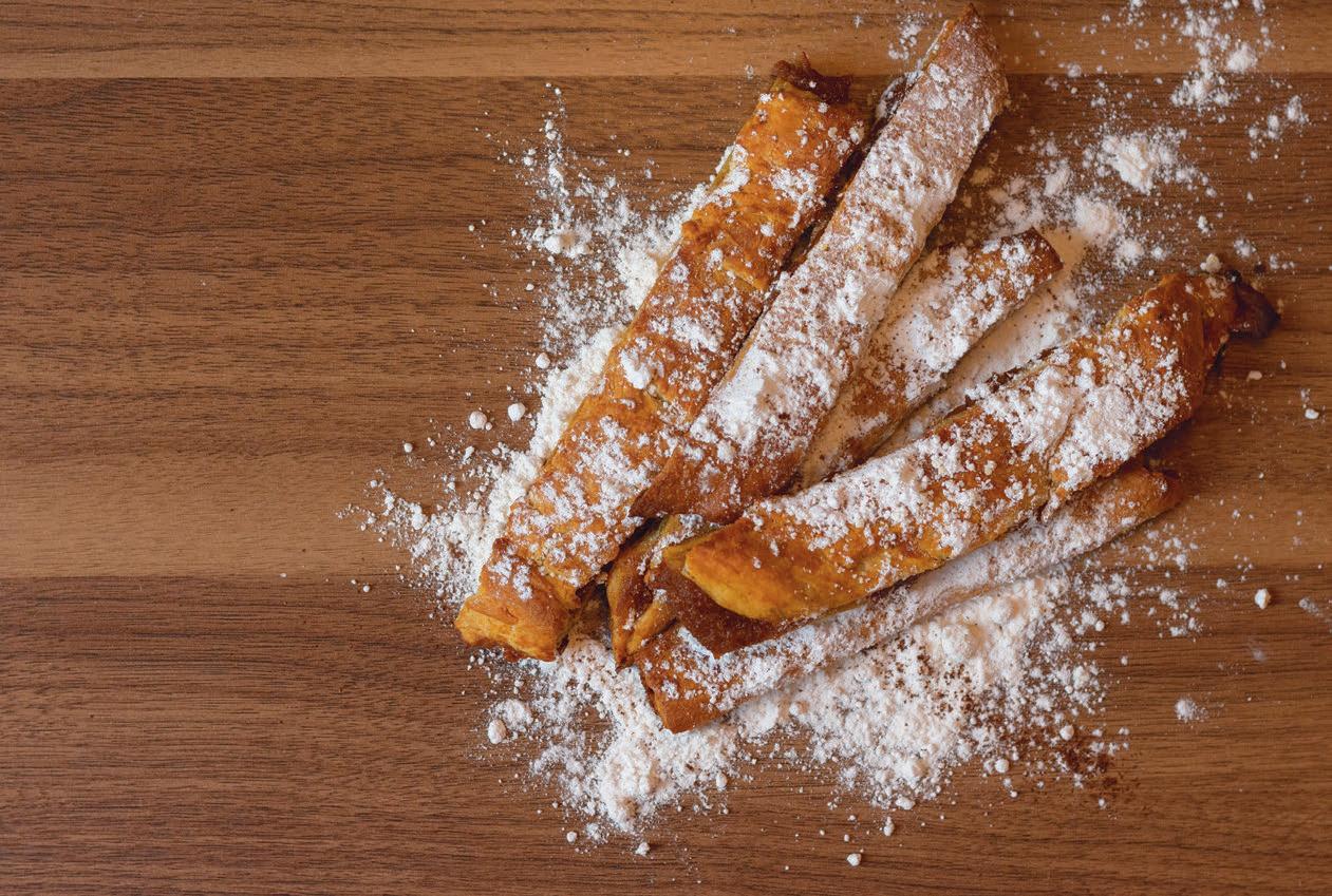 9. Combine sugar and cinnamon and sprinkle generously over each strip.