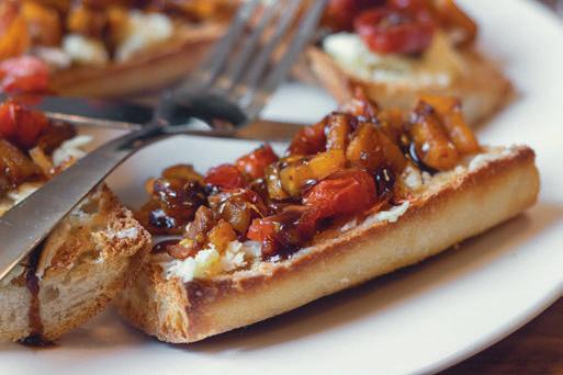 Bruschetta. A complicated word, yet such a simple dish. Traditional bruschetta consists of toasted French bread topped with a tomato mixture, but this variation has a fall twist.