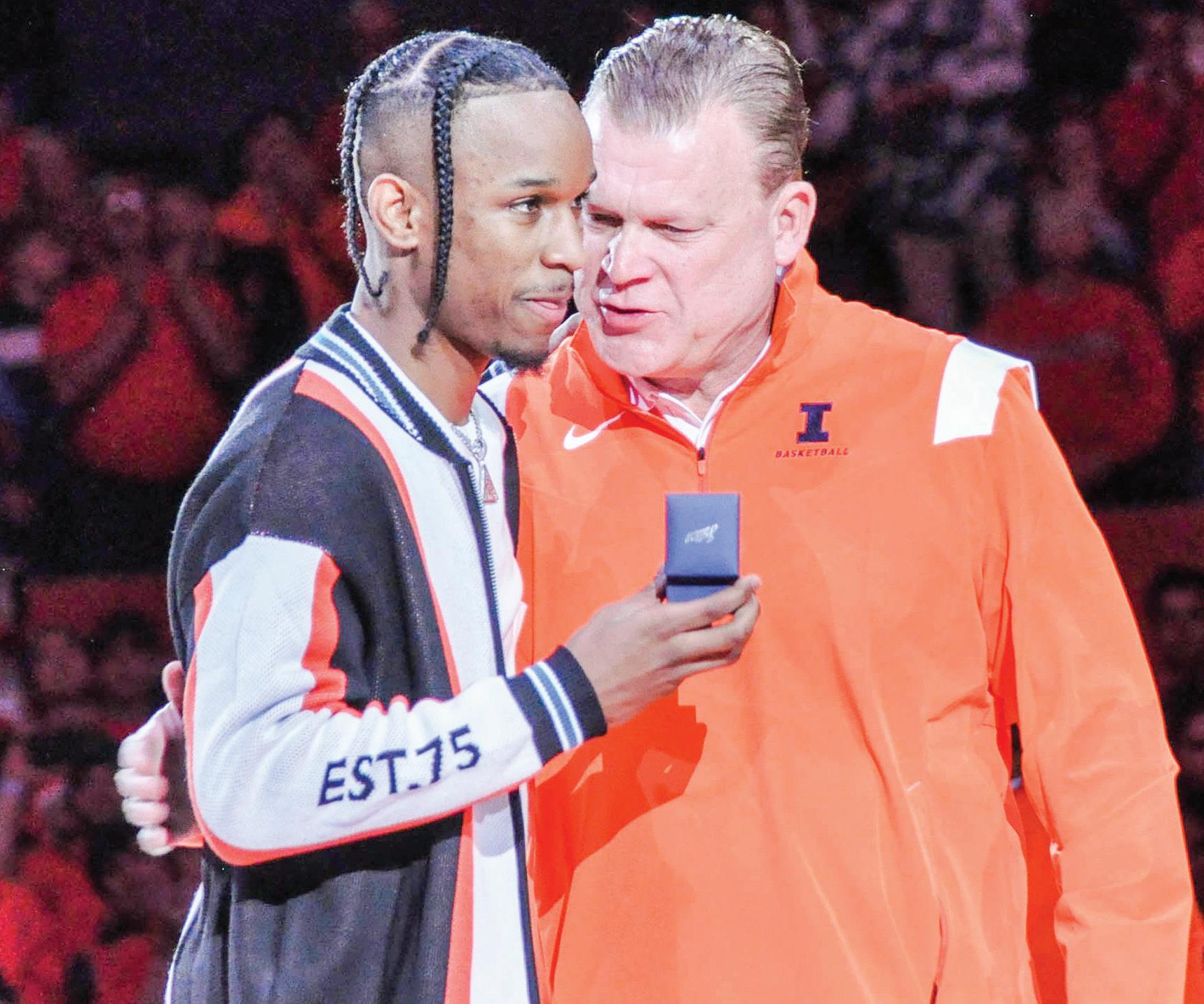 PHOTO COURTESY OF ILLINOIS ATHLETICSSomehow, a 38-point win was the second best thing to happen to Illinois head coach Brad Underwood on Friday night. His team’s 86-48 decimation of the Kansas City Roos took an emotion al backseat for the main event, which happened just minutes before tipoff.