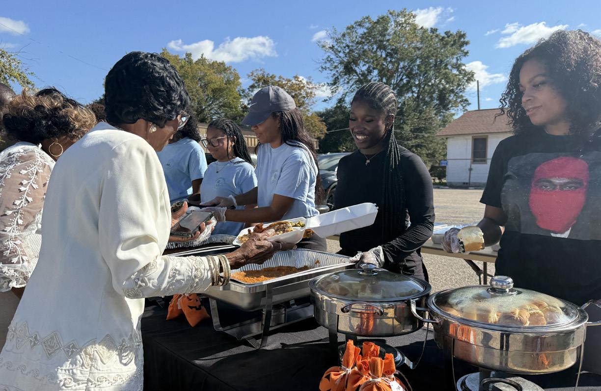The food and to-go boxes were provided by 4 On The Geaux Kitchen & Catering, while the drinks and desserts like apple and pecan pie and cake were brought by volunteers.