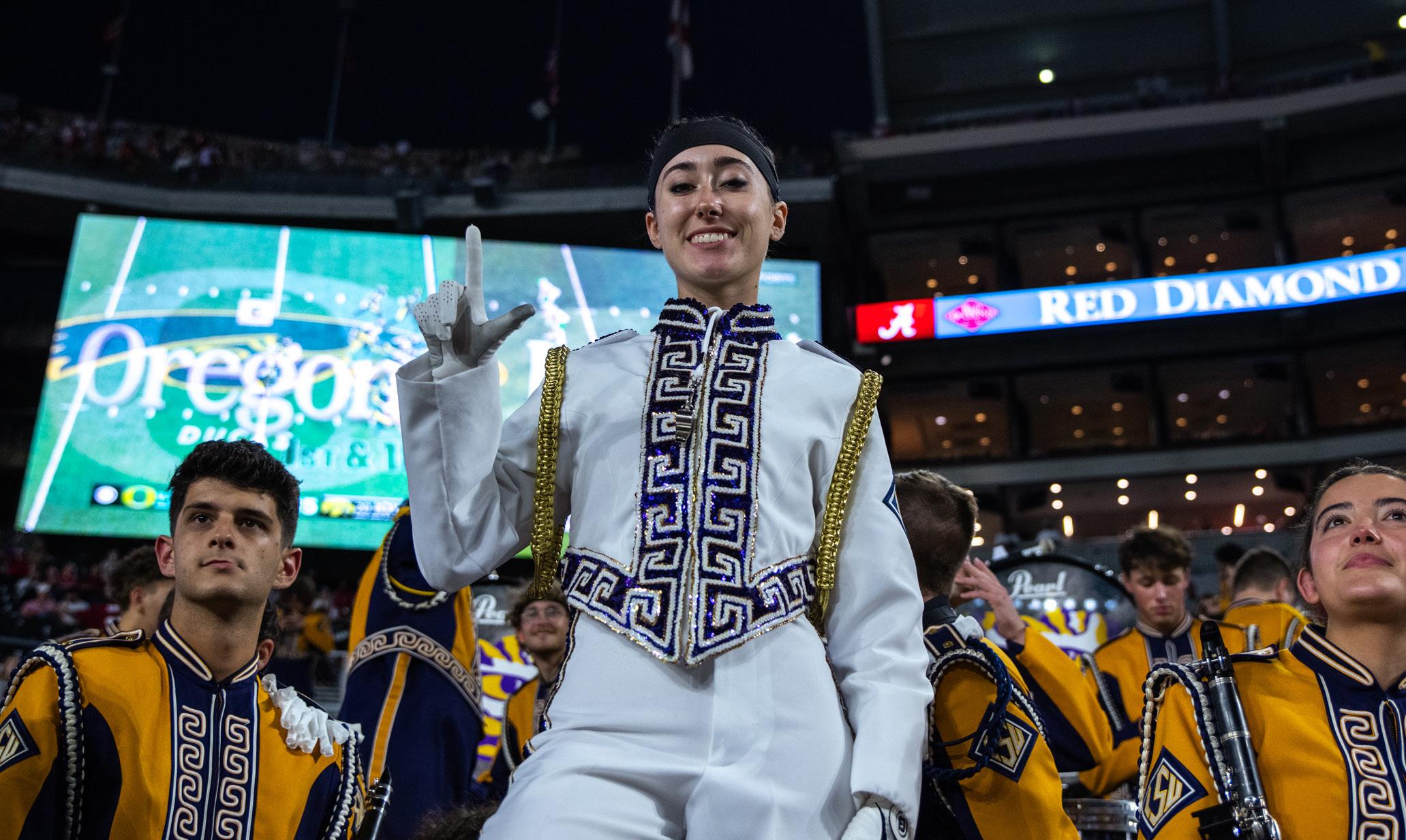 Mansfield is studying art history who’s making her mark in LSU’s musical history as the fourth-ever female drum major to lead the Golden Band from Tigerland.