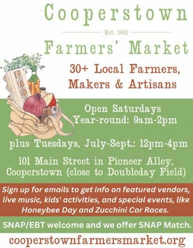 Cooperstown Farmers’ Market 101 Main St., Cooperstown, NY in Pioneer Alley cooperstownfarmersmarket.org