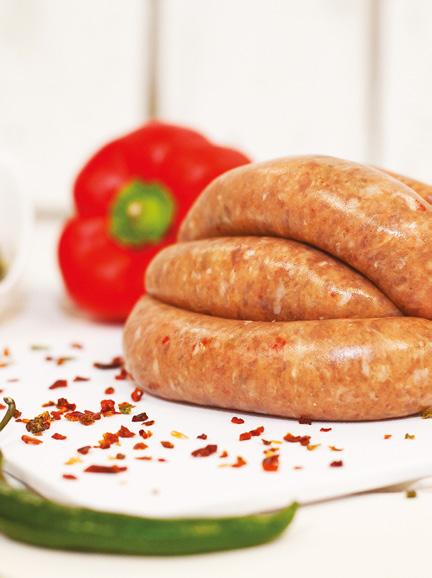 A gourmet pork sausage base flavour gently enhanced with chopped chive.