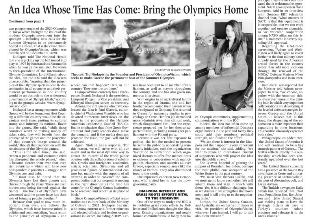 Her vision is to convince the stakeholders that the return of the Olympic Games permanently to their homeland is a one-way street, with many benefits both for Greece and for the whole world.