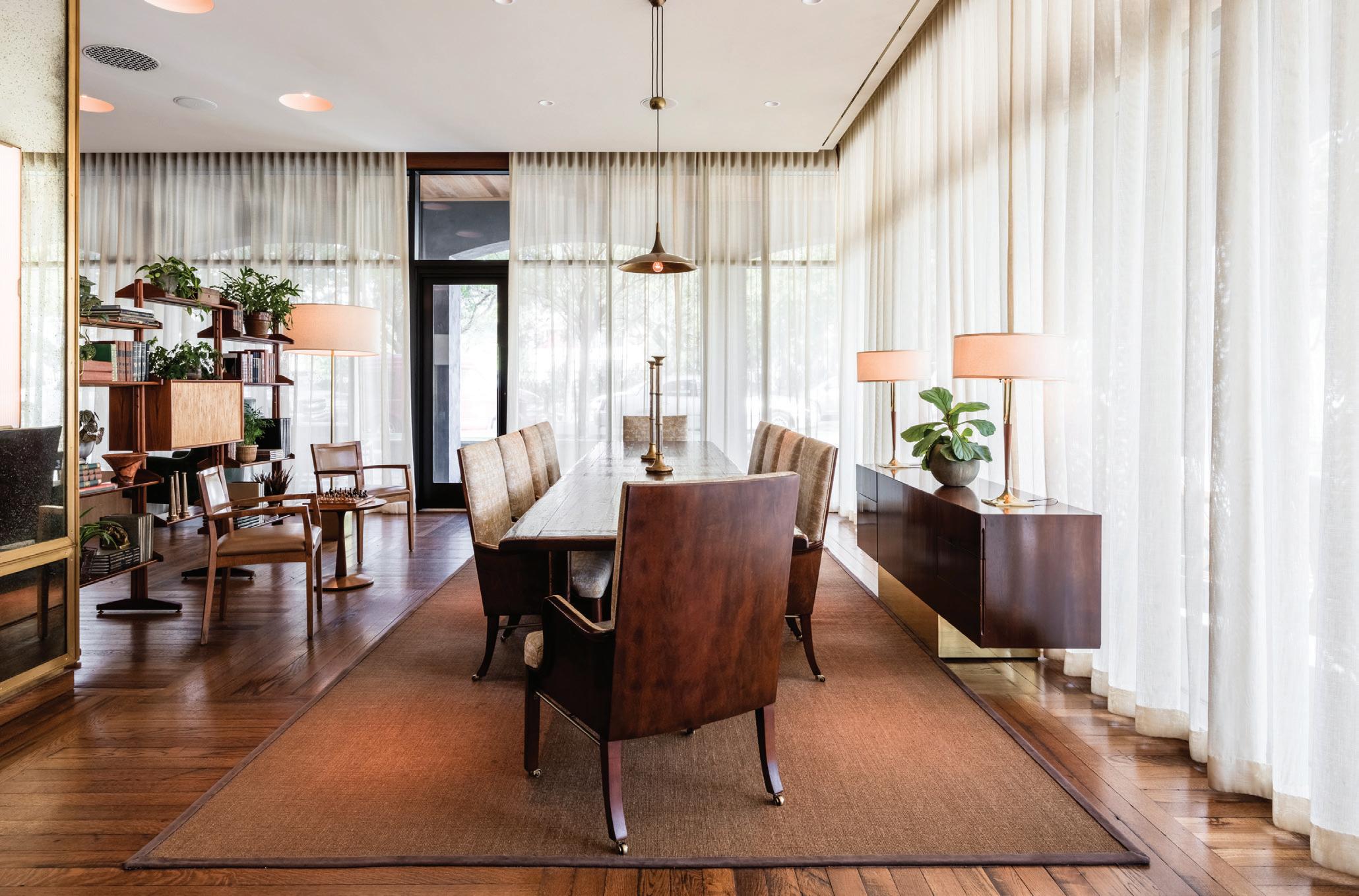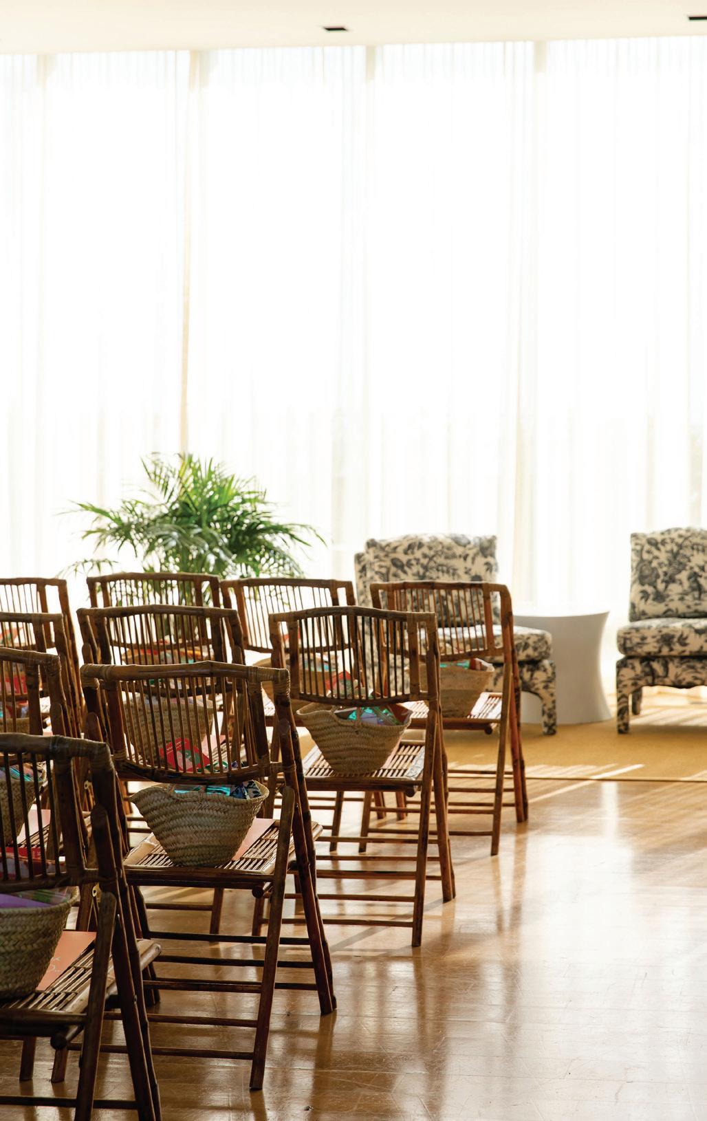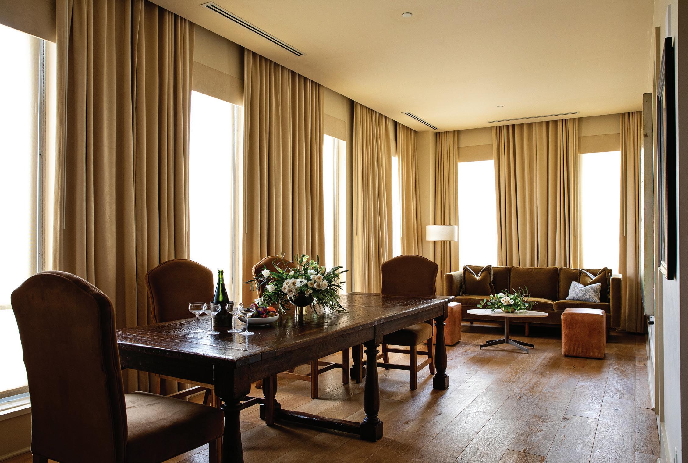 A MODERN SETTING OF REMARKABLE WARMTH and elegance, The Ballroom evokes old Charleston in attitude and aesthetic. A Viennese cast-brass palmetto chandelier and oversized gilded antique mirrors set the mood in this stylish 1,750-square-foot space accommodating up to 120 guests. White Oak parquet floors reminiscent of Versailles, as well as works by Charleston artist Douglas Balentine, specially commissioned for The Dewberry, add to the room’s elegant atmosphere. Floor to ceiling drapes can be adjusted to create a rich play of light and shadow between the interior ballroom and the outdoor gardens.