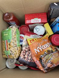 Tinned foods including meats, pasta, rice, beans, biscuits, snacks, UHT milk, baby formula, orange squash, toothpaste, soap, shampoo etc. Basic staple foods to feed a family and toiletries. (No fresh goods please).