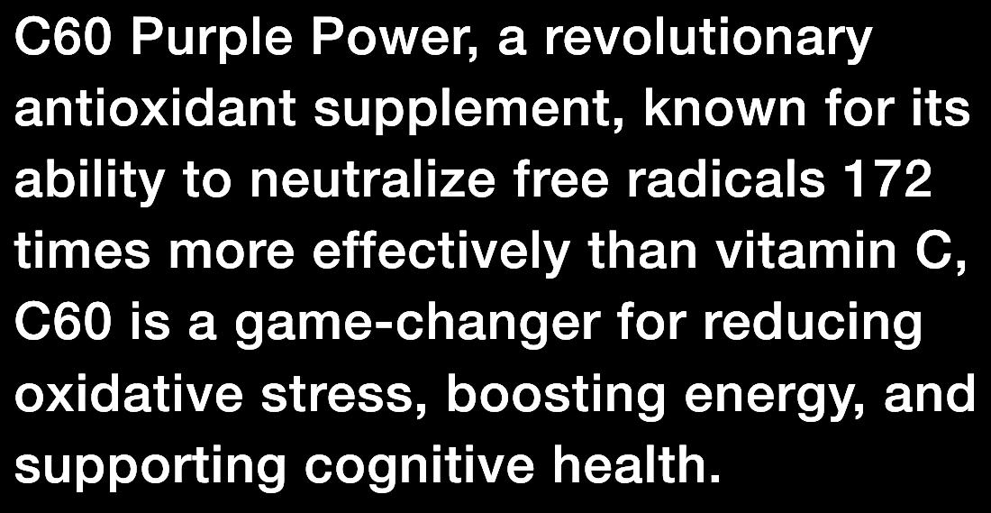 C60 Purple Power, a revolutionary antioxidant supplement, is now featured in The DNA Talks Digest! Known for its ability to neutralize free radicals 172 times more effectively than vitamin C, C60 is a game-changer for reducing oxidative stress, boosting energy, and supporting cognitive health Backed by scientific research, this potent molecule helps optimize your body's natural defenses, promoting overall wellness and longevity.