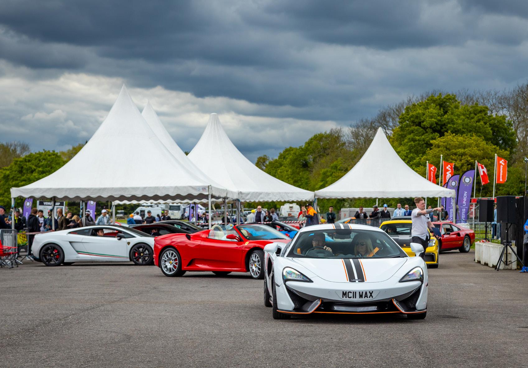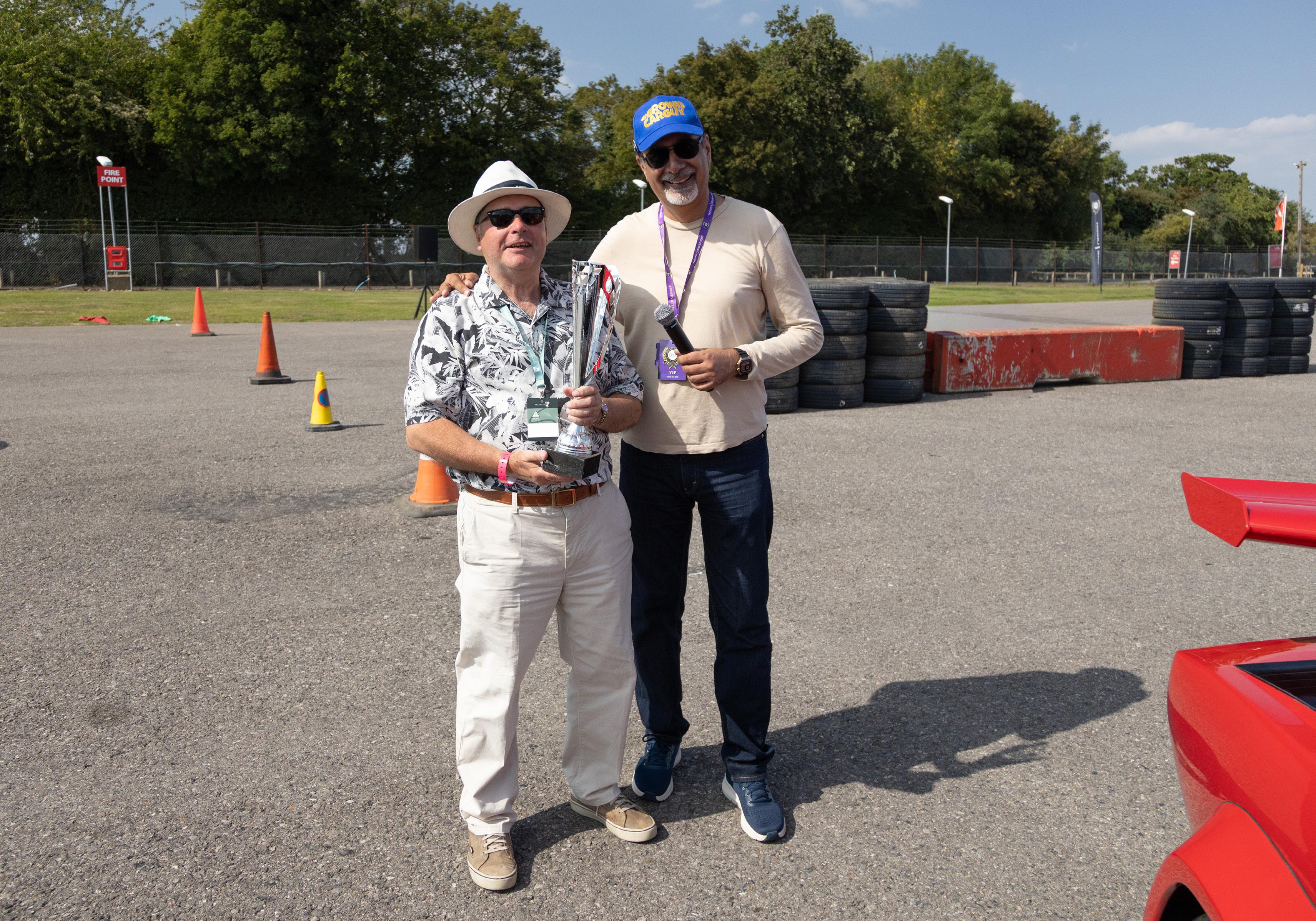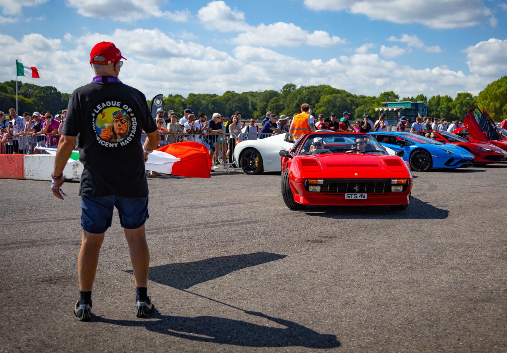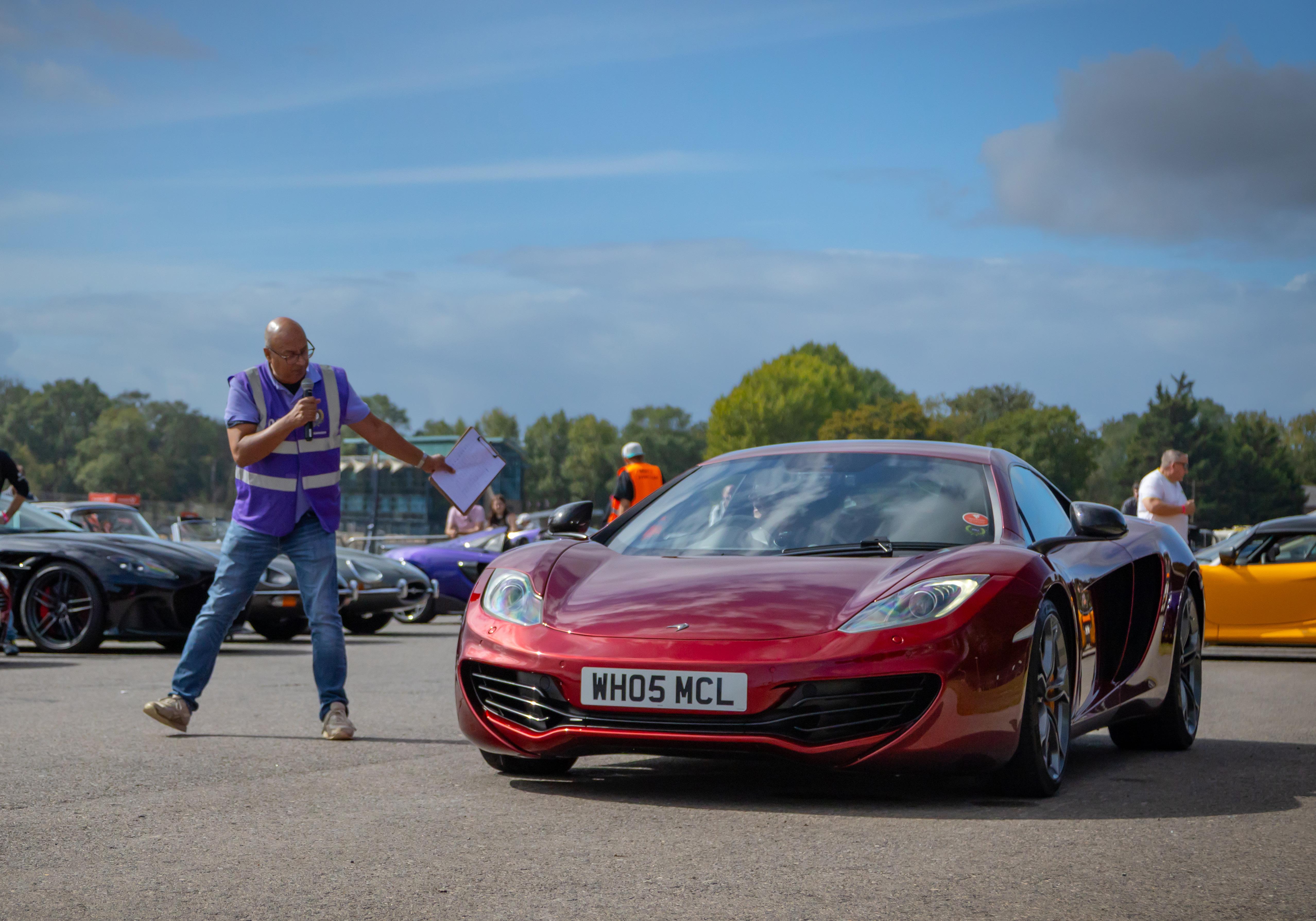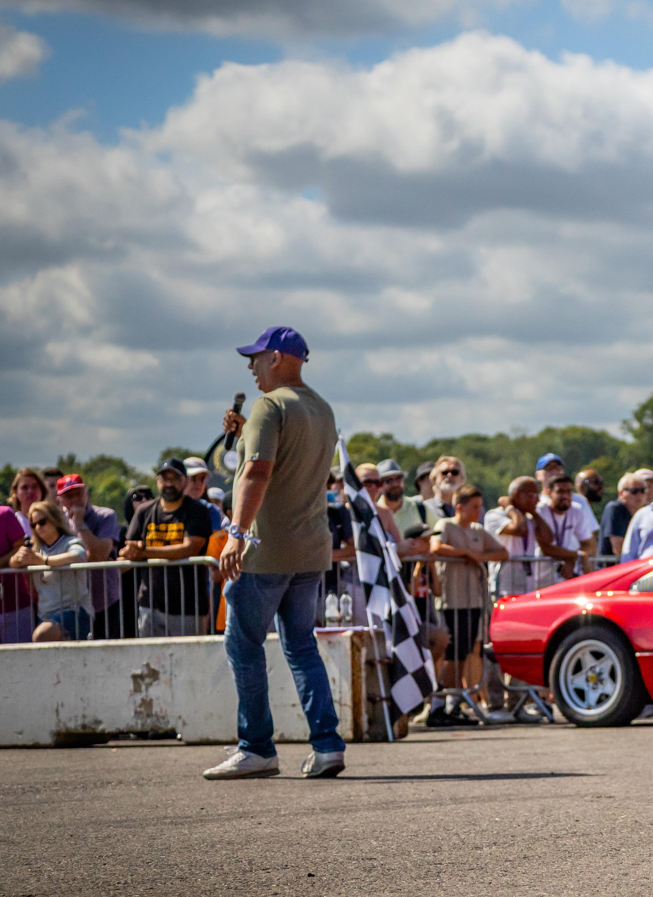 My job as emcee is part storyteller, part conductor of controlled chaos… and part ten-year-old kid. I’m there to keep the crowd informed, entertained, and just a little on edge as McLarens, Ferraris, Lamborghinis and the occasional howling classic, attack a short course as fast as their owners dare to drive between concrete blocks.