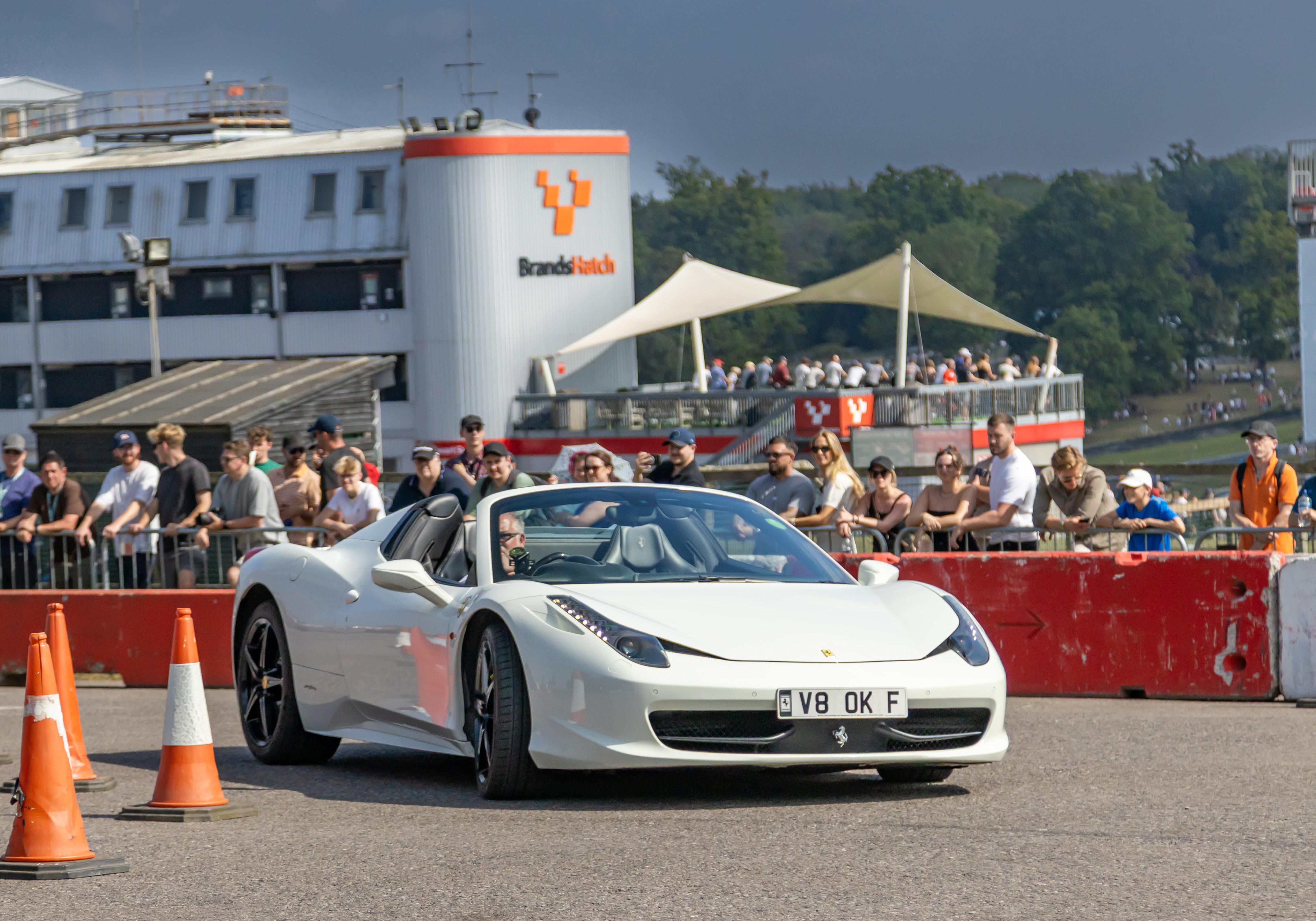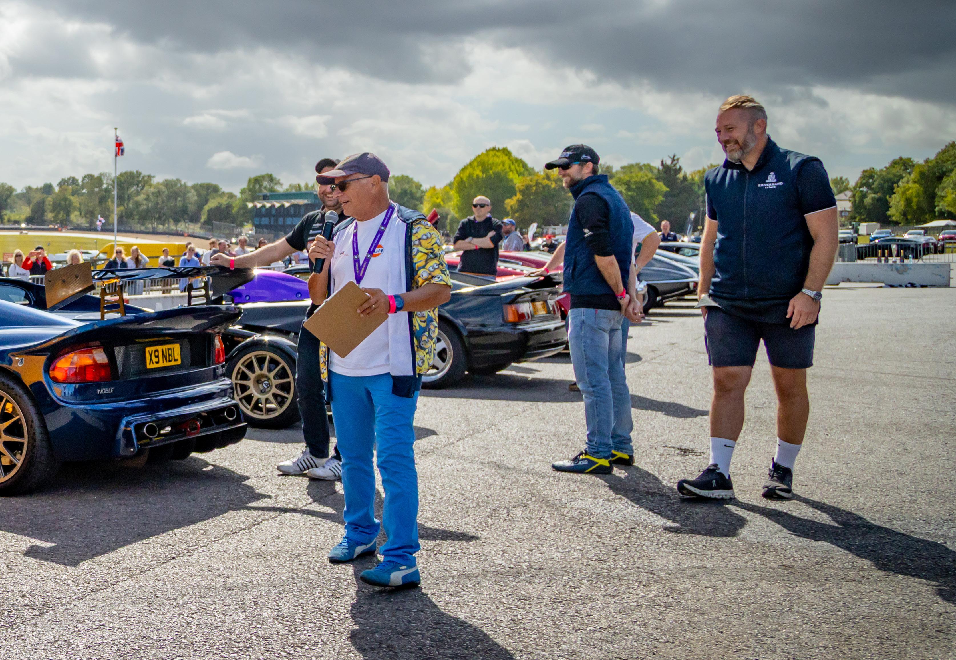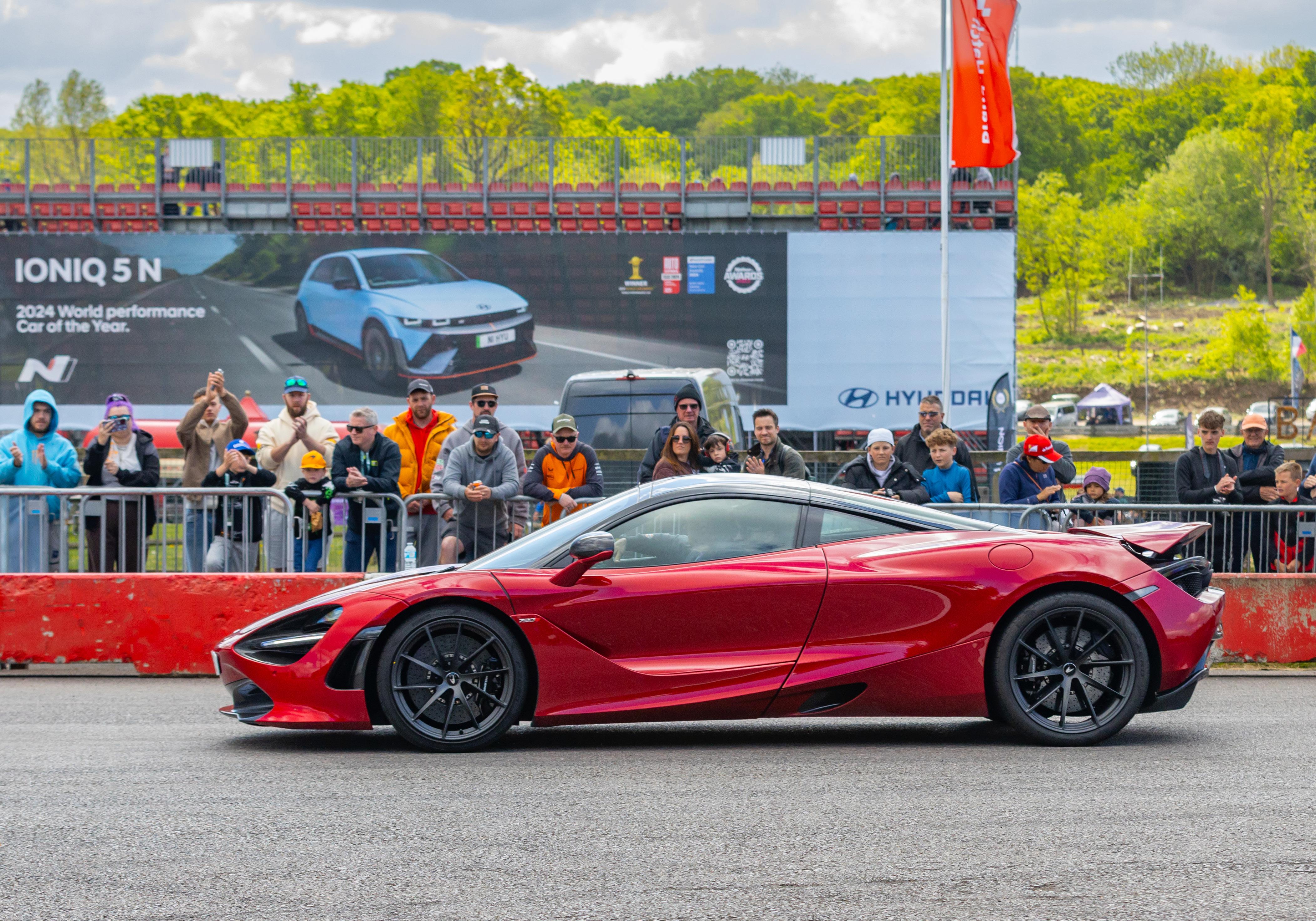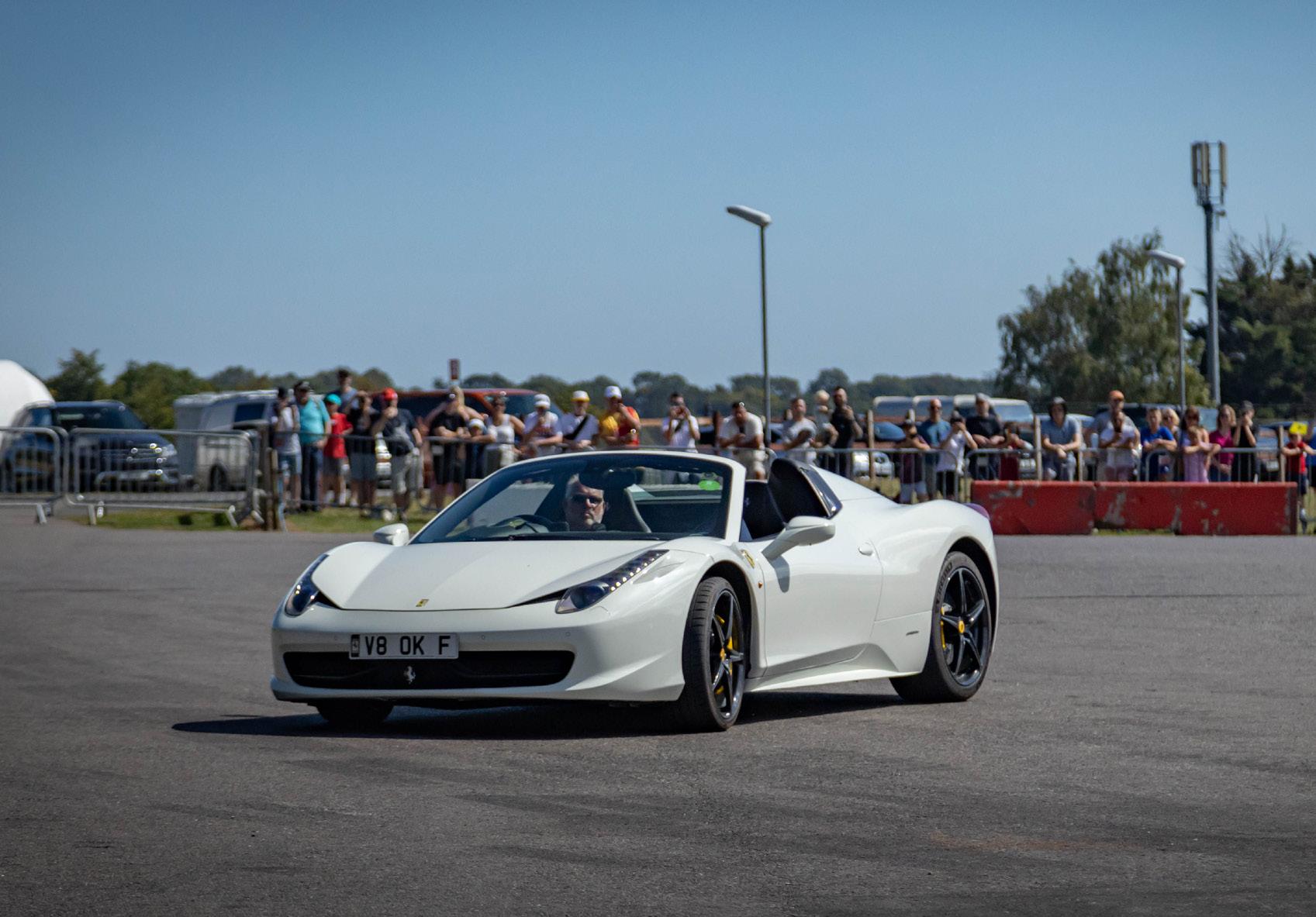 My job as emcee is part storyteller, part conductor of controlled chaos… and part ten-year-old kid. I’m there to keep the crowd informed, entertained, and just a little on edge as McLarens, Ferraris, Lamborghinis and the occasional howling classic, attack a short course as fast as their owners dare to drive between concrete blocks.