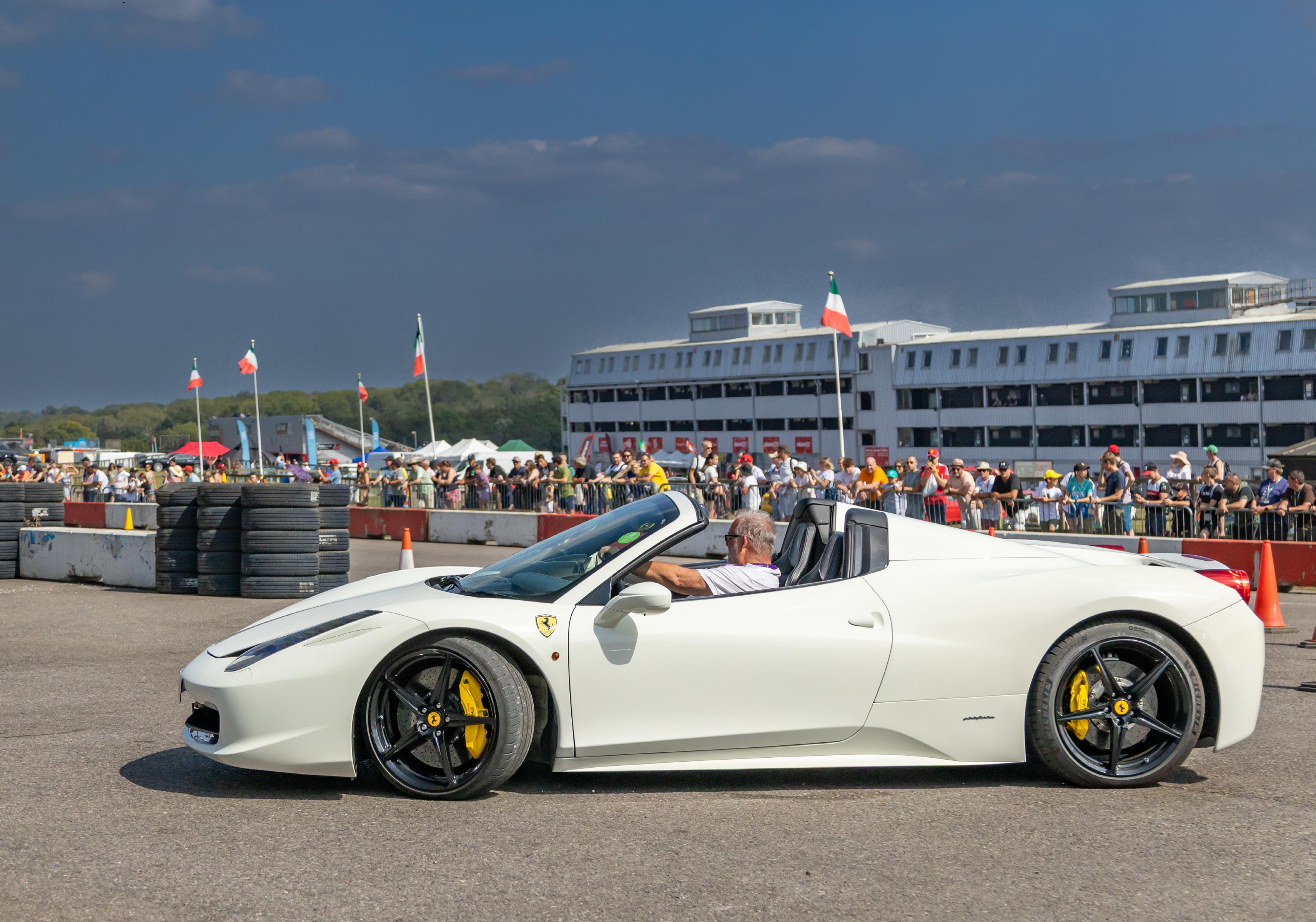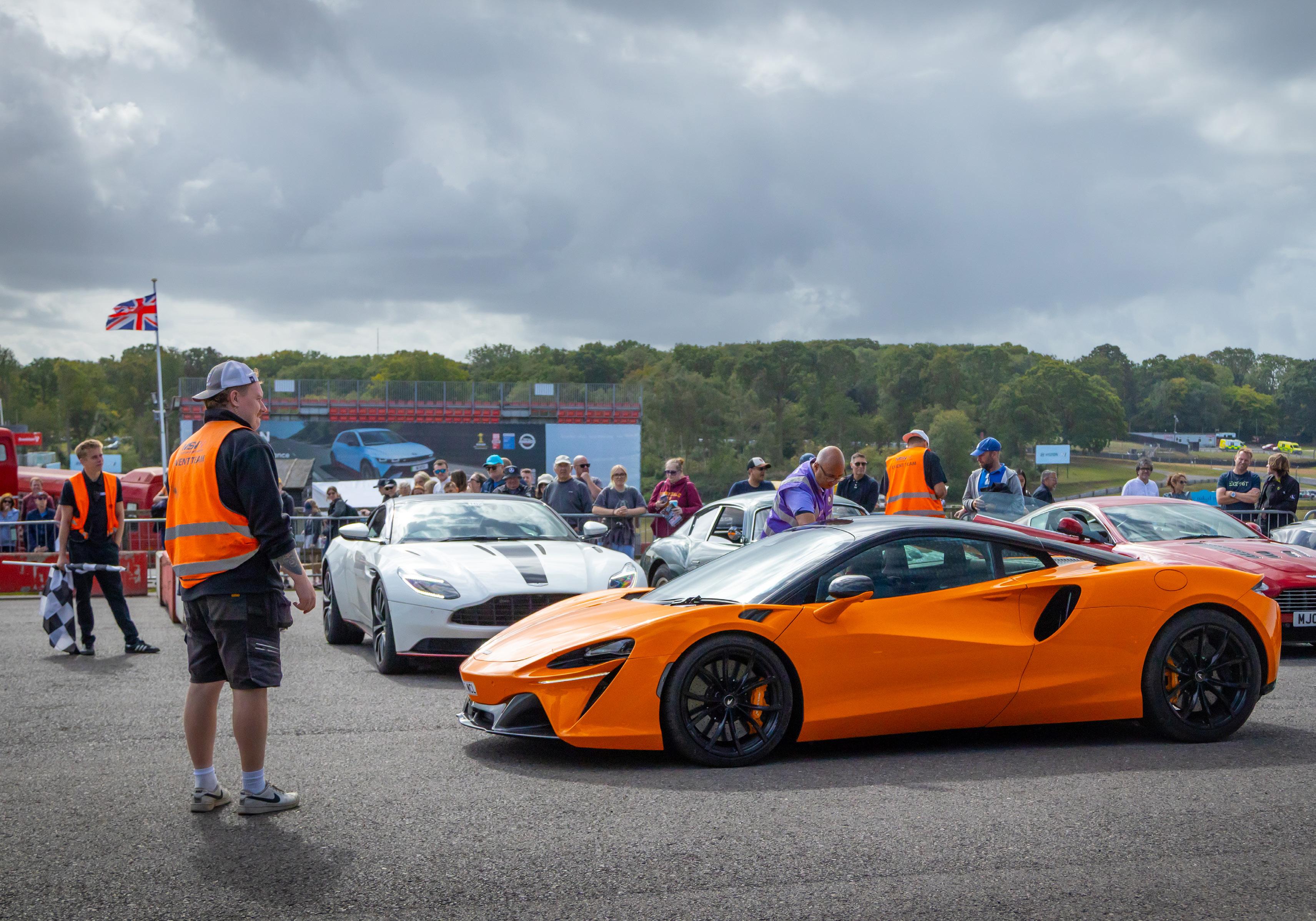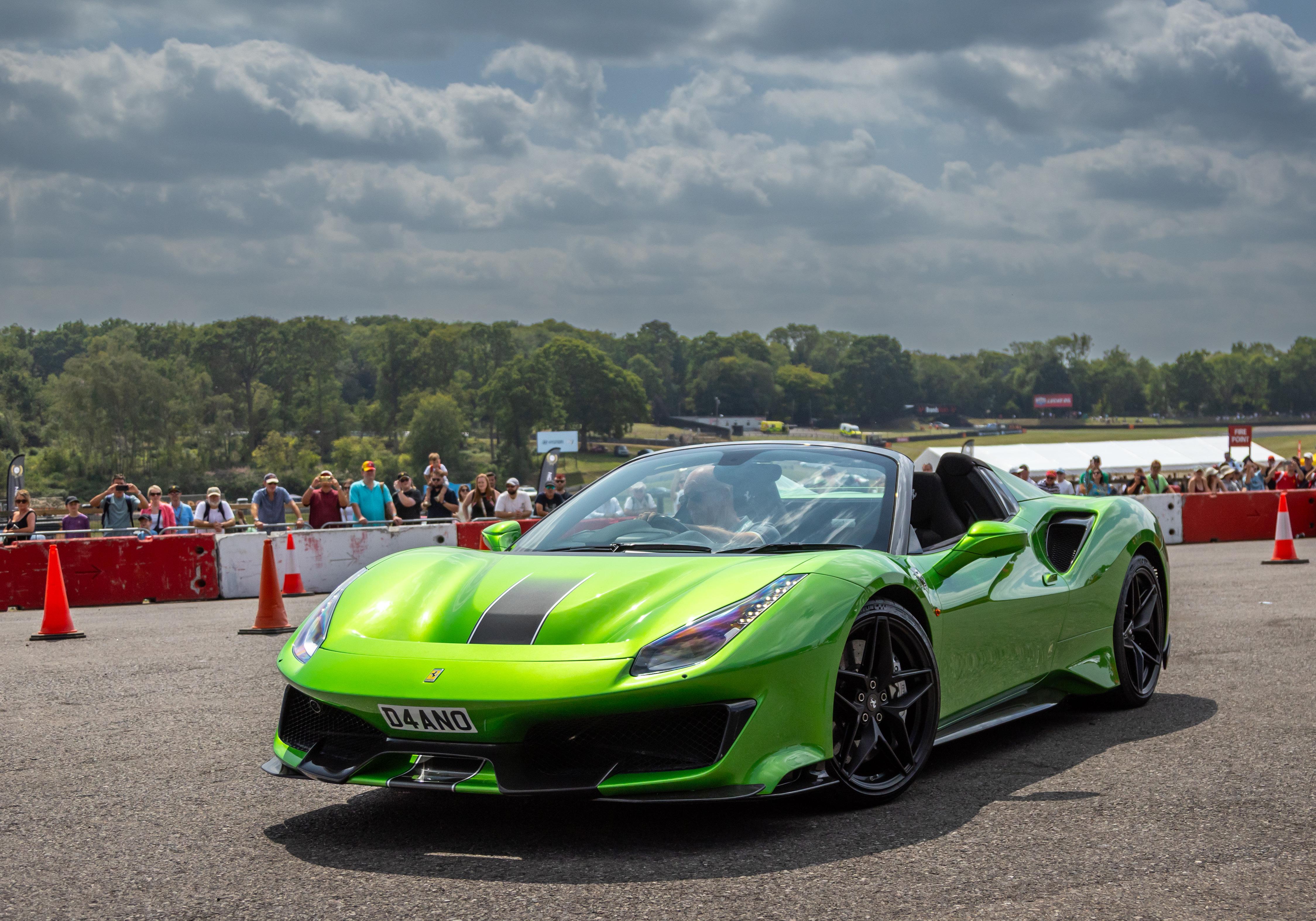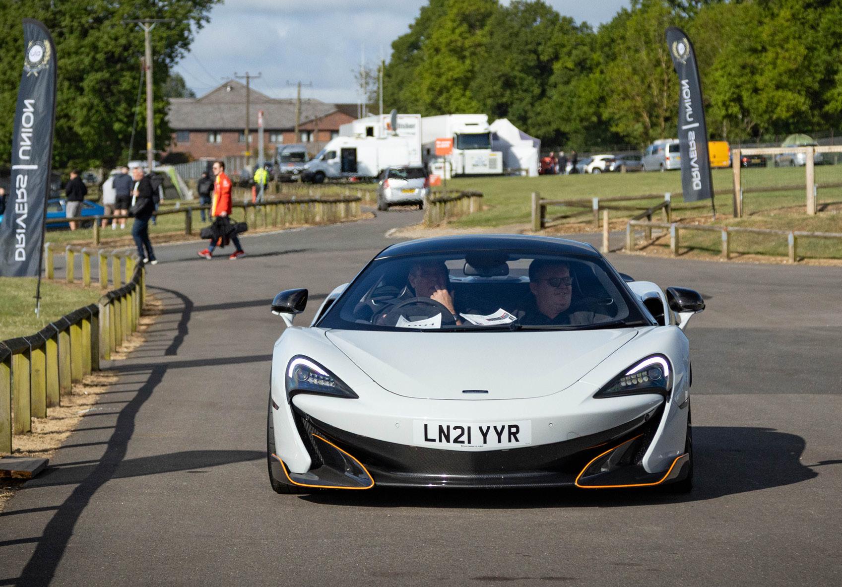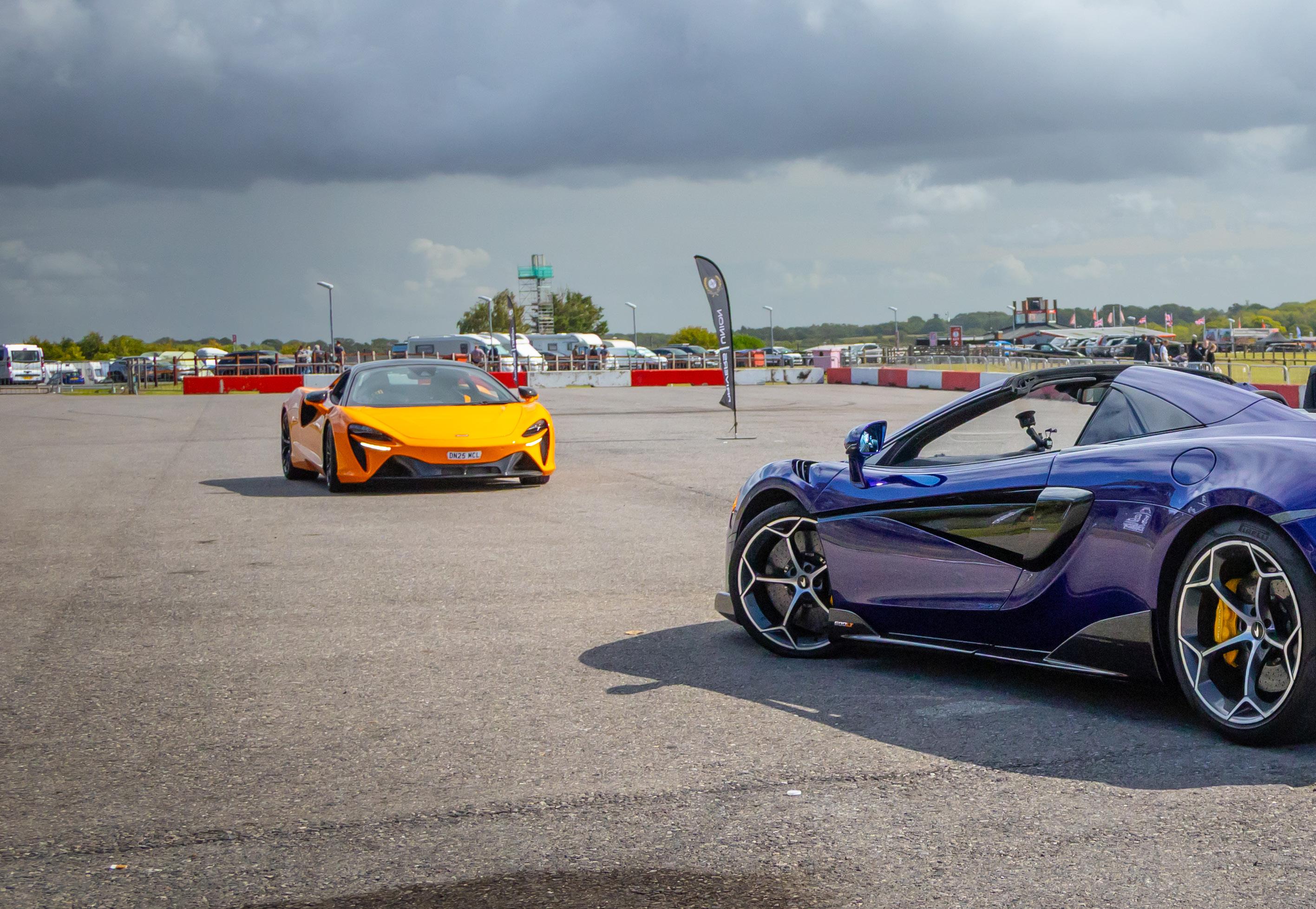 My job as emcee is part storyteller, part conductor of controlled chaos… and part ten-year-old kid. I’m there to keep the crowd informed, entertained, and just a little on edge as McLarens, Ferraris, Lamborghinis and the occasional howling classic, attack a short course as fast as their owners dare to drive between concrete blocks.