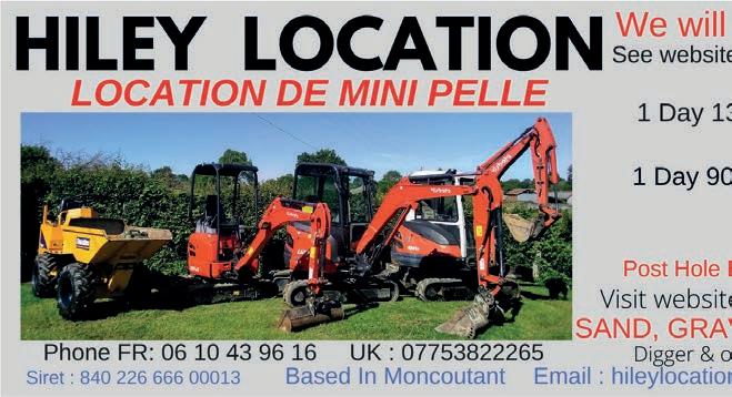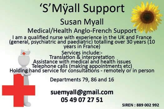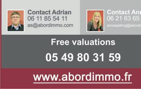 Due to exceptional sales period we urgently seek properties of all types and price ranges. Excellent prices are being achieved. Now is the time to sell Call today for a FREE valuation NOW IN OUR 12th YEAR French Emergency Phone Numbers 112 General Emergency (English spoken) 15 Ambulance 17 Police 18 Fire Brigade 114 Hearing impaired (videophone, chat, SMS or fax) 115 Homeless Person 116 Missing child 119 Child in danger 196 Maritime emergency WE ARE RECRUITING Start a new career as a properrty sales agent If you would like the freedom to grow a succesful business supported by an award winning team, please contact our recruitment department: +33 (0)5 53 60 82 77 recruitment@leggett.fr www.leggettfrance.com 62 | The Deux-Sèvres Monthly, May 2022 WE ARE RECRUITING Start a new career as a properrty sales agent If you would like the freedom to grow a succesful business supported by an award winning team, please contact our recruitment department: +33 (0)5 53 60 82 77 recruitment@leggett.fr www.leggettfrance.com The job is varied and you meet interesting people.