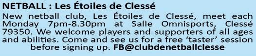 See www.vie-nouvelle-civray.com Contact 05 49 87 49 04