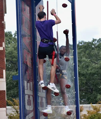 Students waited in lines across the Lawn, the outdoor space in front of the Main Student Center, for their chance to partake in the activities. While some veered to the artistic section offering caricature drawings and custom tie-dye shirts, others braved the athletic based activities such as the wall climbing challenge.