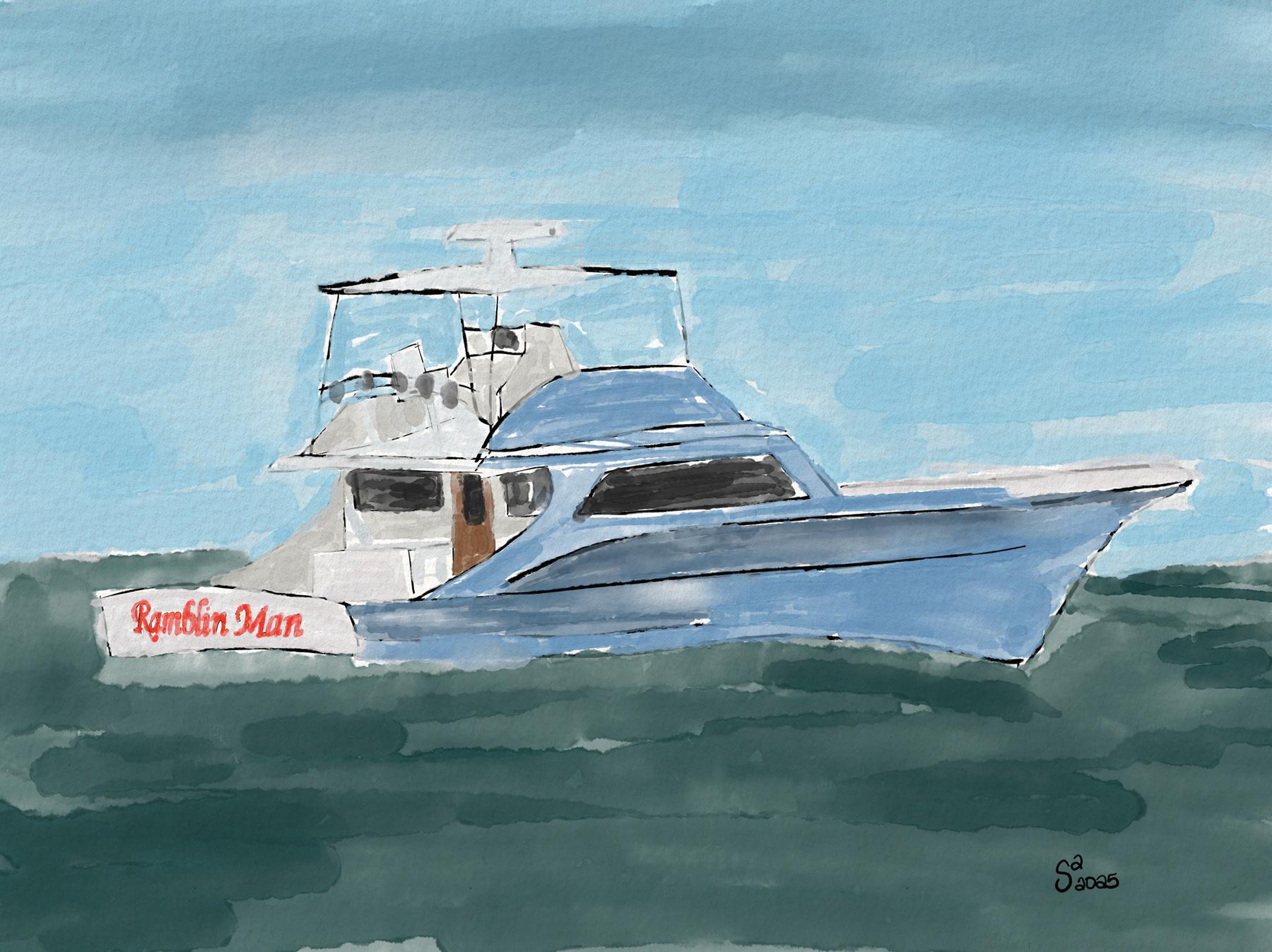 “Ramblin Man” is my favorite Sportfishing boat on the Morehead Waterfront and a nod to the charter boats that glide past on a summer morning, rods rigged and ready, chasing dolphin and marlin offshore.
