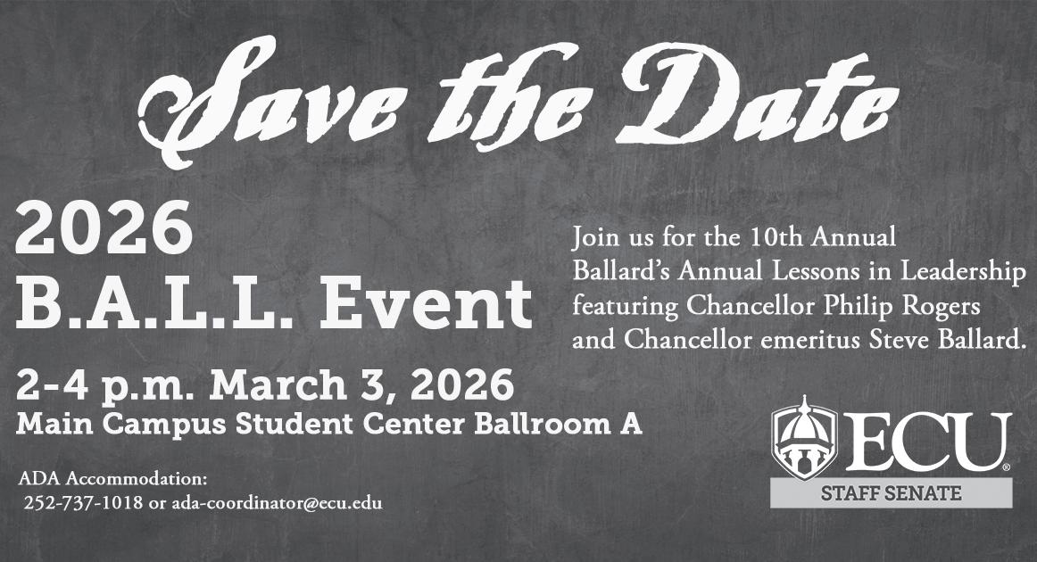 Make sure to save the date for East Carolina University's 10th annual B.A.L.L. Event on Tuesday, March 3, in Ballroom A at the ECU Main Campus Student Center from 2 p.m. - 4 p.m.