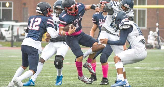 to injury, including one to standout Gabe D’Aver sa-Herbert which would end the senior’s season after week two. But Provenzale and the rest of the Eagles understand that now is not the time to rest on their laurels. Eastchester will close out the season with two winnable games against Sleepy Hollow and John Jay Cross River (both 2-3) be fore a regular-season finale showdown with undefeated