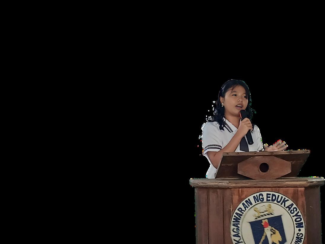 bothphysicalsafetyand throughHazardMapping, MentalHealthAwareness Campaigns,andtheE-Voice Platform,whichadvocatesfor equality,gendersensitivity, andsocialawareness Meanwhile,theProactive StudentCommunityinitiative includesHelpPeers,apeer tutoringprogram;Neo-Space Checking,aweekly cleanlinessandsafety monitoringactivity;and preparationsfortheSSLG ElectionSY2026–2027to promotedemocratic leadershipandresponsible participationamongstudents Bernidoconcludedher addressbyurgingstudentsto supportoneanotherandtake partintheSSLG’sprograms.“If wedonotsupporteachother, whowill?”shesaid, emphasizingunityand collectiveresponsibility amonglearners Sheendedthespeechwith amessagethatresonatedwith thestudentbody:“Hinditayo kabataanlang,tayoay kabataan” astatementthat underscoredtheactiveroleof theyouthinbuildingamore inclusiveandempowered schoolcommunity