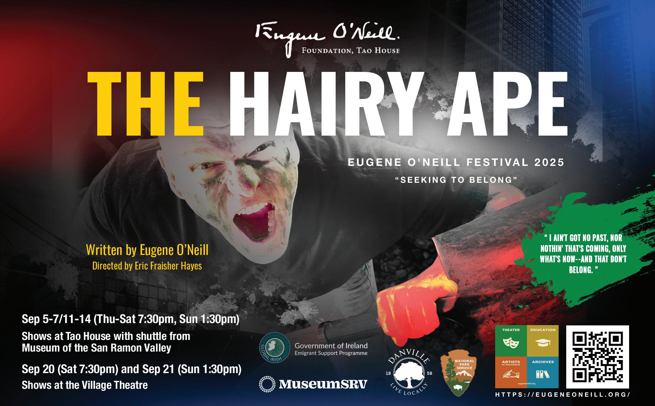 The second is O’Neill’s own daring 1922 play, Harry Ape directed by Eric Fraisher Hayes. This expressionist, existentialist masterpiece explores the still potent themes of racism, industrialization, and income inequality, as it follows a laborer named Yank trying to find his place in the world. Harry Ape will be presented for the Festival’s first two weekends (September 5-7 and September 11-14) at the barn at Tao House, then moves to Danville’s Village Theatre for the final weekend (September 20-21). This production at the Village Theatre provides an opportunity to present the work to a larger audience.