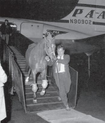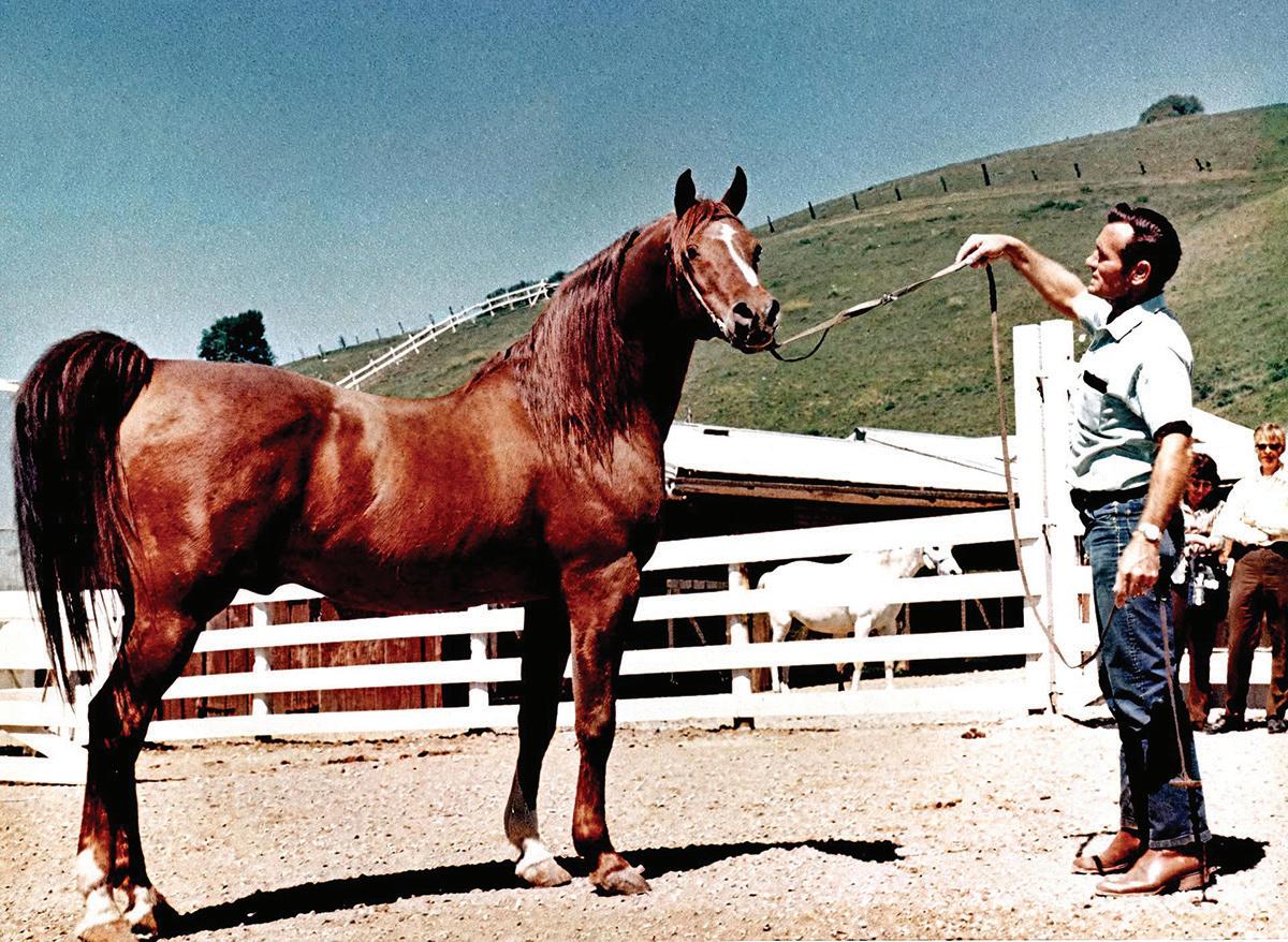 Serafix, owned by Alamo’s John Rogers, shown with trainer Murrell Lacey. From Facebook group “Arabian Horse Shows: The Good Old Days.”