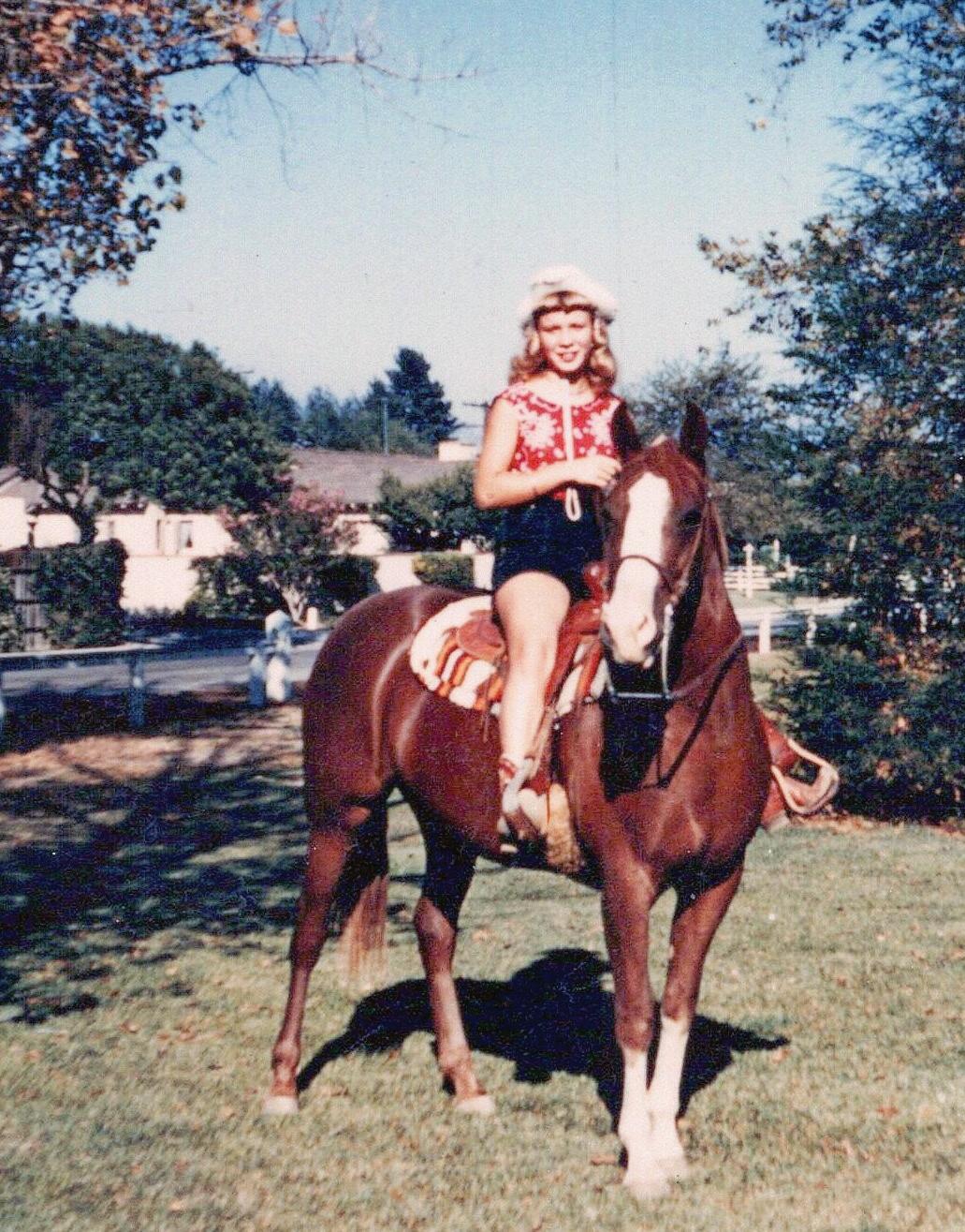 My mother Angela Parizek Horine, riding her horse Chula in Griffith Park, Glendale, California.