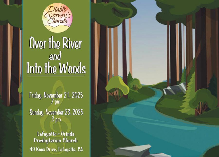 The Diablo Women’s Chorale (DWC) presents Over the River and Into the Woods, a musical experience celebrating the wonders of nature, devotion, and true love. Featuring classics like Bridge Over Troubled Water mixed with contemporary music such as No Roots, DWC brings to life autumn’s warmth, hues, and harmonies.