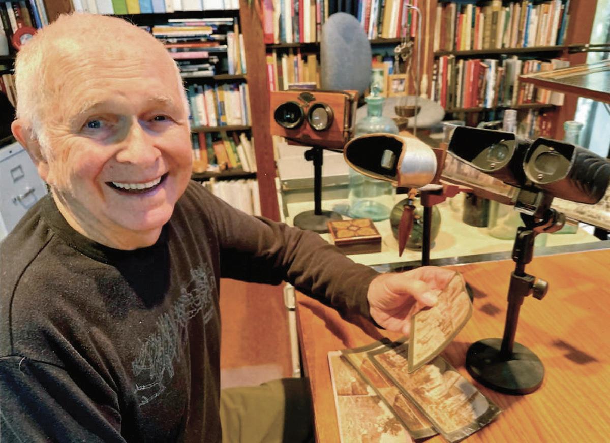 My father, David Horine, with part of his stereoscope and stereoview collection.