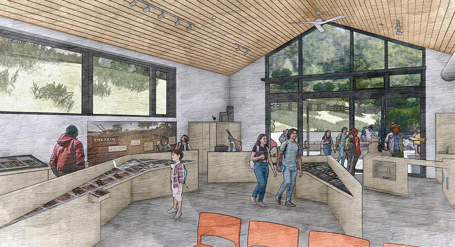 to gather and learn, and provide outdoor education opportunities that are not currently available in the park. Plans include more interactive, hands-on exhibits to learn about the ecology of the mountain.