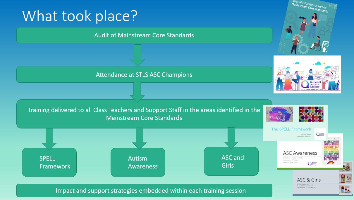 With hindsight attempting to cover three key areas in Section 2 of the MCS was very ambitious. As a result, it was not possible to cover much of Cognition & Learning as an area, which as a positive has ensured that the MCS still feature as a key strand in our current SIP (2022/2023).