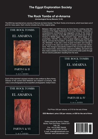 Each of the reprinted volumes includes a new preface by Barry Kemp, Director of the current EES fieldwork and research at Amarna, with colour cover photographs by the expedition photographer, Gwilym Owen.