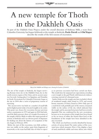 As part of the Dakhleh Oasis Project, under the overall direction of Anthony Mills, a team from Columbia University has begun fieldwork at the temple at Amheida. Paola Davoli and Olaf Kaper describe the results of the first seasons of excavation.